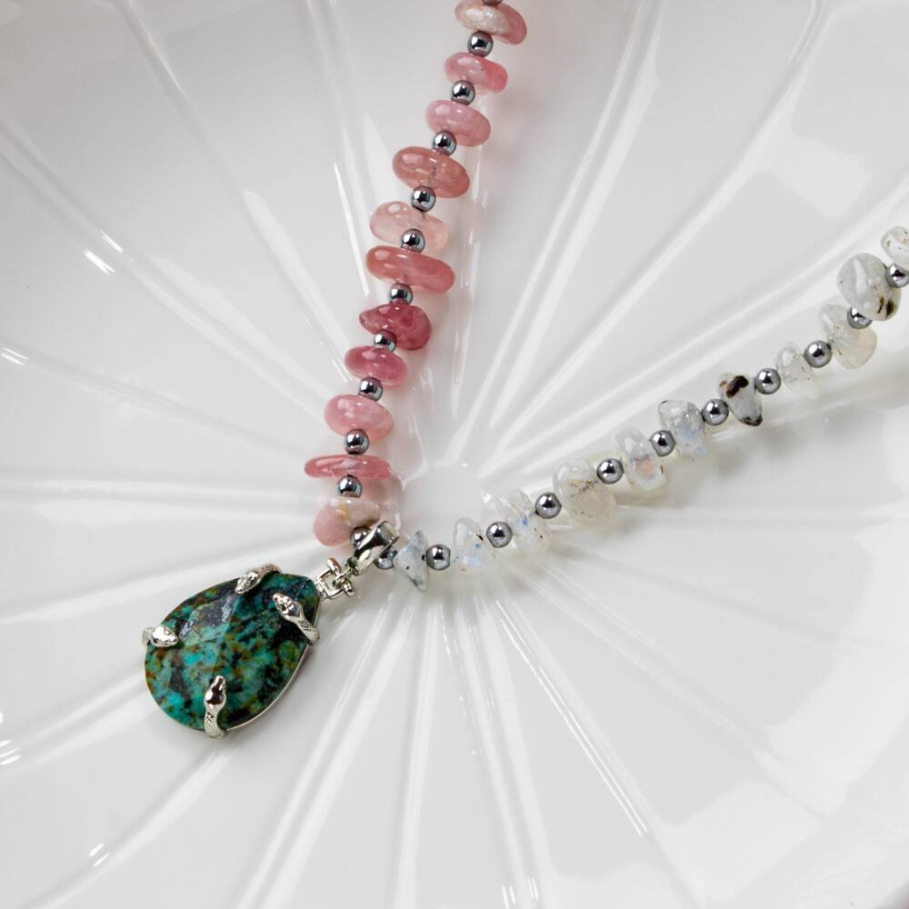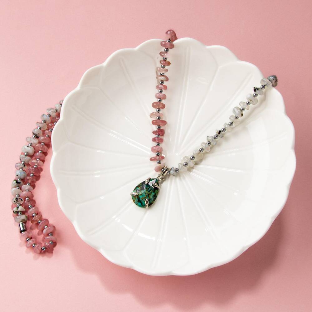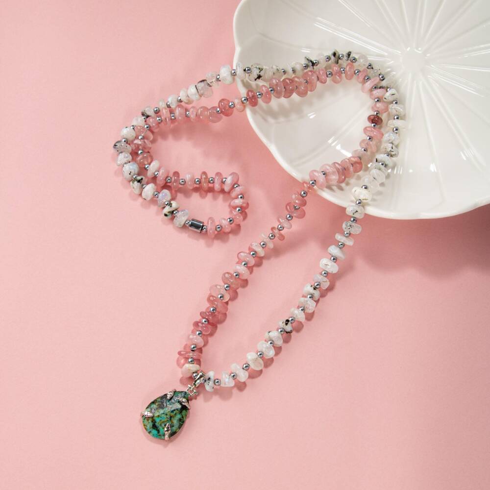 TÜM TAŞLARIMIZ SERTİFİKALI ve %100 ORJİNAL GERÇEK DOĞAL TAŞTIR.Doğal taş takılarının bu eşsiz güzelliği ve faydalarıyla müşterilerimize en kaliteli ve en özel takıları sunuyoruz. Her bir takı, tasarımcılarımız tarafından özenle hazırlanmış, doğal taşların renkleri ve enerjileri ile birlikte, size en uygun olanı seçmenizi sağlar.Doğal taş takılarımız, herhangi bir moda stiline mükemmel bir şekilde uyum sağlar. Aynı zamanda doğanın eşsiz güzelliklerini keşfetmek isteyenler için de harika bir seçenek sunarlar. Kendinizi özel hissetmek istediğinizde, doğal taş takılarımız sizin için mükemmel bir seçenek olacaktır.Ürün İçeriğindeki Taşlar Aşağıda Listelenmiştir.Turkuaz (Firuze) Taşı ÖzellikleriNazara karşı çok etkilidir. Romantizmi artırır. Olumsuz enerjileri dağıtır. Hava kirliliğine ve çevresel kirliliklere karşı koruma sağlar. Psikolojik yorgunluğu giderir. Pembe Kuvars Taşı ÖzellikleriHer kadında olmazsa olmaz olan taşlardandır. Romantizmi kuvvetlendirir. Çiftler arasında aşkı ve tutkuyu artırır. Cilde parlaklık verir, güzelleştirir. Ay Taşı ÖzellikleriHer kadında olması gereken başlıca taştır. Kadın taşıdır. Kadınsal rahatsızlıklara iyi gelir. Kadınsal, dişil enerjiyi ve hormonları artırır, teşvik eder. ----------------BİLGİ:Doğal taşların faydaları günümüzde birçok kullanıcıdan alınan geri dönüşlerde defeatle gözlemlenmiştir. Kan dolaşımına ve sindirim sistemine bir ilaç gibi dahil edilememesi; enerjileri ve kullanımı açısından sunacağı faydaya inanma ön koşulu gerektirmesiyle kesinlikle bir ilaç mahiyetinde değildir. Fakat geçmişten günümüze Biruni ve İbn-i Sina gibi büyük tıp alimleri doğal taşlar üzerinde düşünmüş, araştırmış ve geliştirdikleri tedavi yöntemlerine dahil etmişlerdir.Doğal taşların faydaları bilimsel bir deney-gözlem sürecinden ziyade geçmişte yaşayan toplumların ve tıp alimlerinin kullanım amaçlarına istinaden belirlenmekte, tespit edilmektedir. Bil biliyoruz ki şifa sadece Allah’tandır. Nereden ve nasıl geleceği belli olmaz.KAYNAK:Osmanlı Doğaltaş taşların özellikleri ve kullanım bilgileri için aşağıdaki kaynaklardan faydalanmaktadır.Walter Schumann, Gemstones Of The World (Sterling Yayın Evi, 17. Baskı).Judy Hall, Değerli Taşlar Kitabı (Alfa Basım Yayın, 3. Basım, 2021)Muhammed Bin Mahmud-ı Şirvani, Tuhfe-i Muradi. Hazırlayan: Mustafa Argunşah (Türk Dil Kurumu, 1999)Patrick Voillot, Elmaslar ve Değerli Taşlar (Yapı Kredi Yayınları, 1. Baskı, 2013)