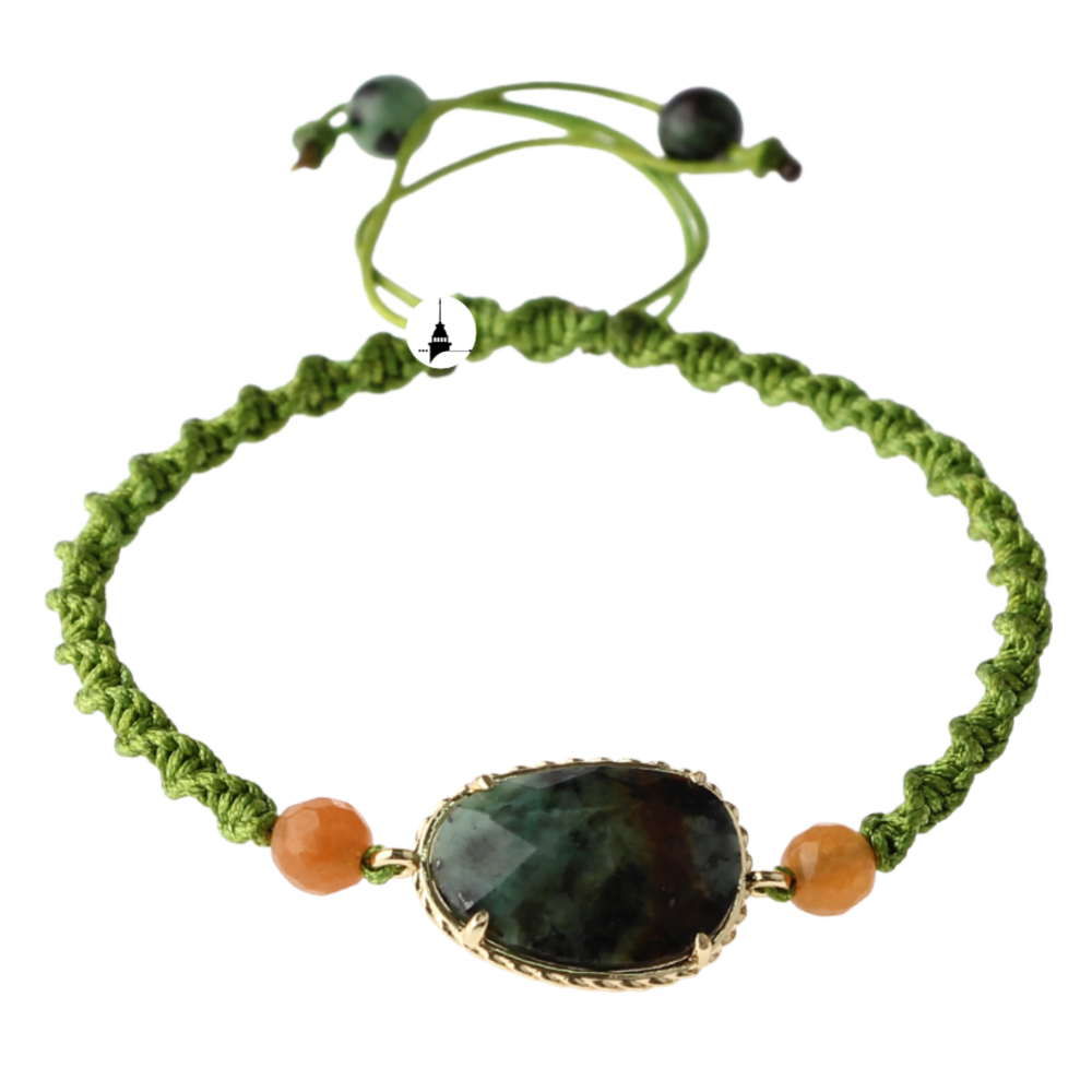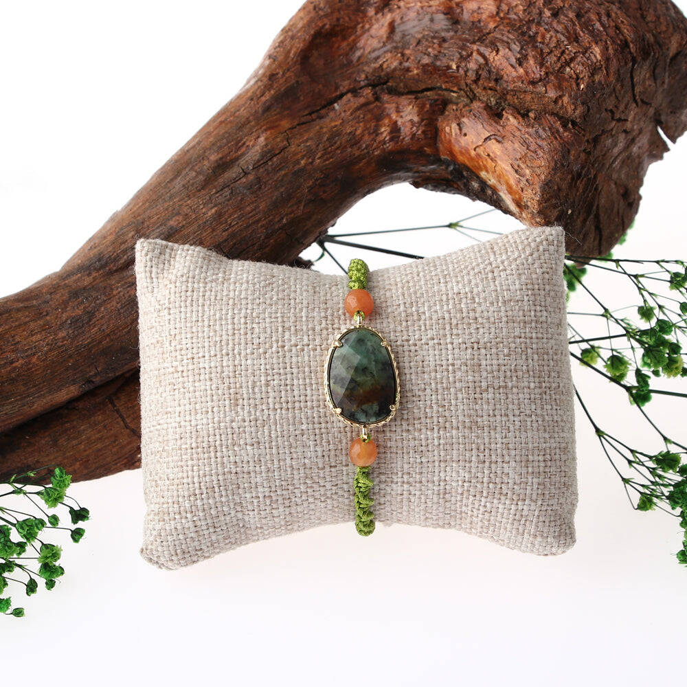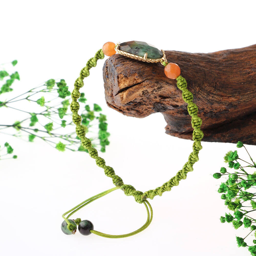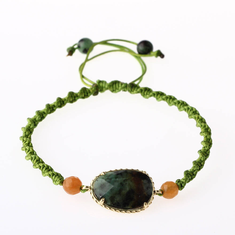 Afrika Turkuaz- Turuncu Aventurin Doğal Taş Makrome Örgü Bileklik
