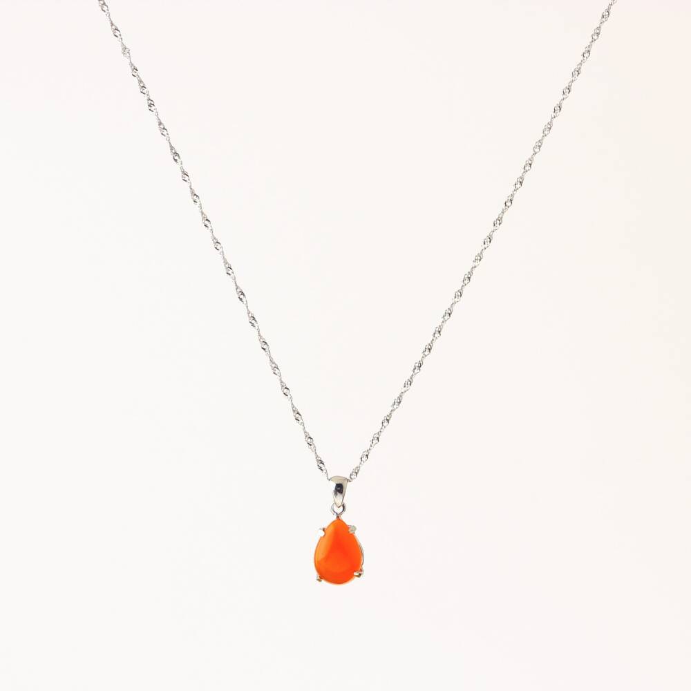 Akik Doğal Taş Kolye, Gümüş Zincir - 1
