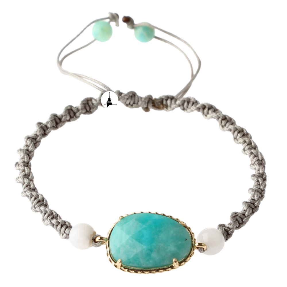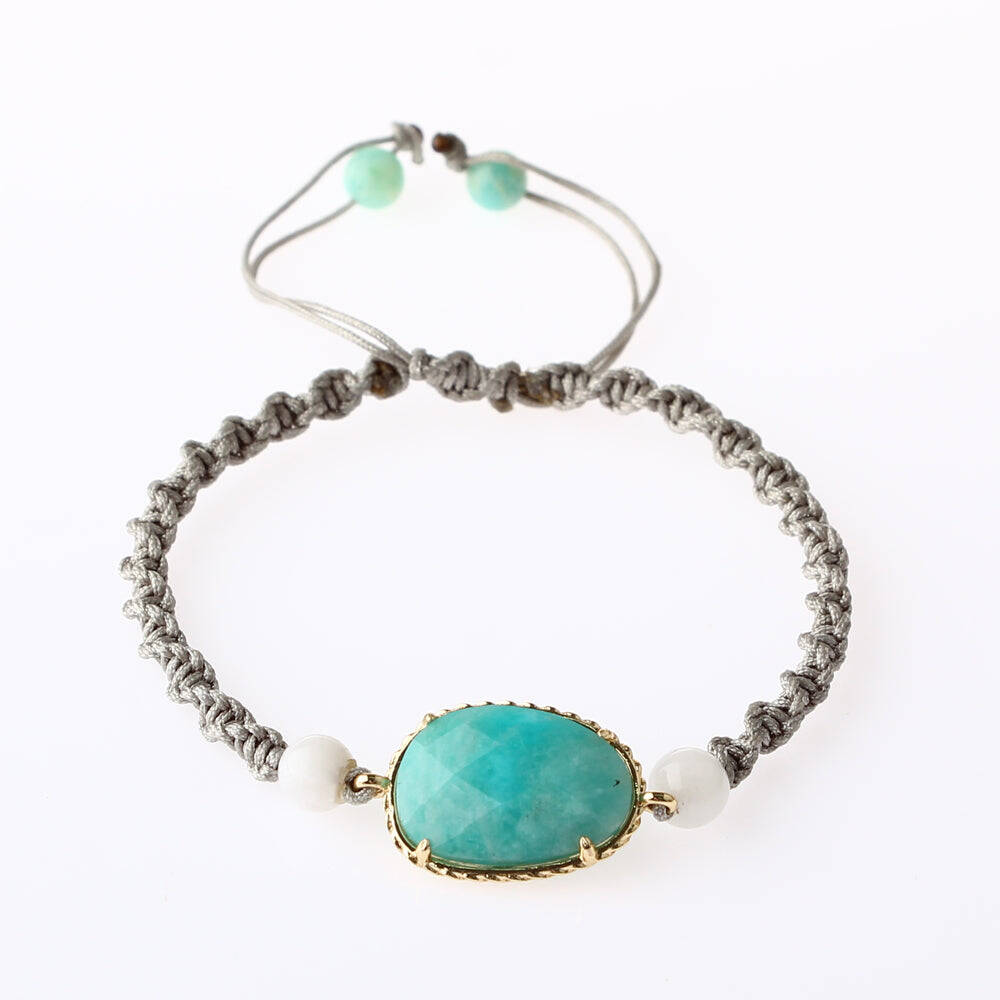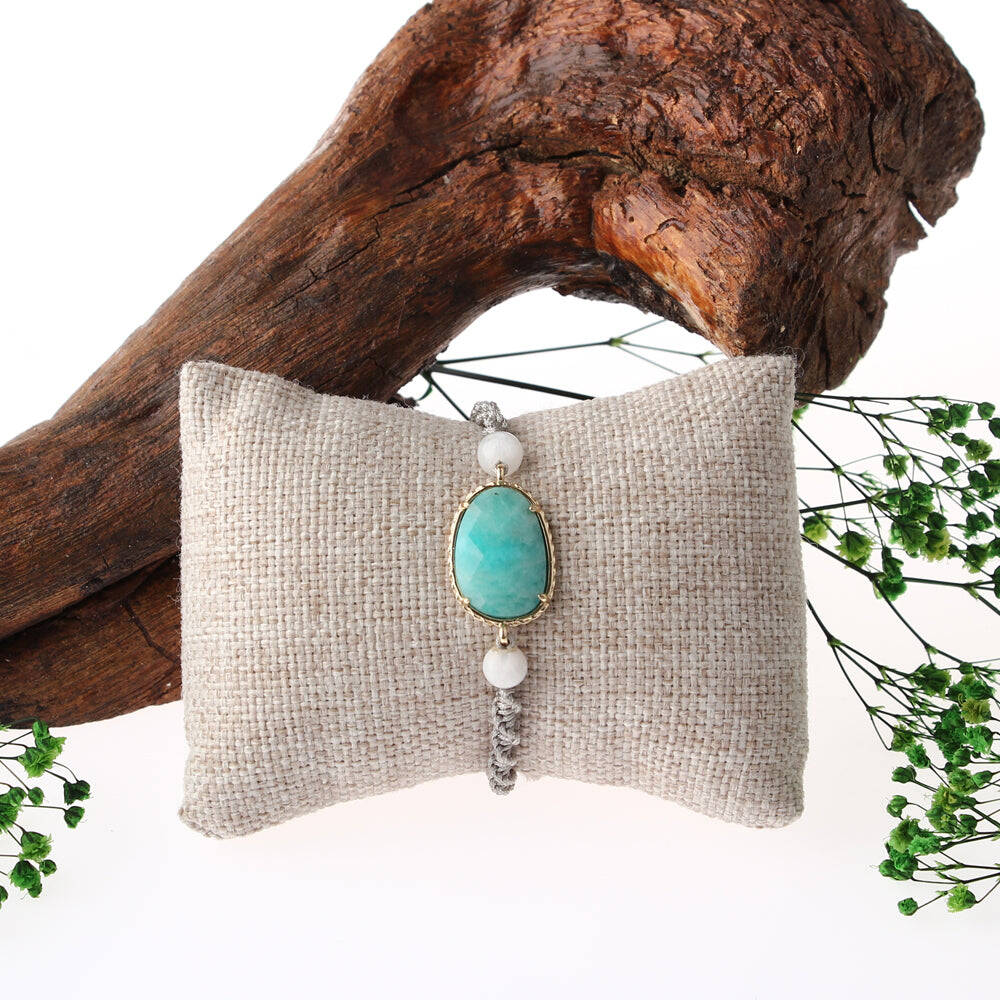 Amazonit-Ay Taşı Doğal Taş Makrome Örgü Bileklik