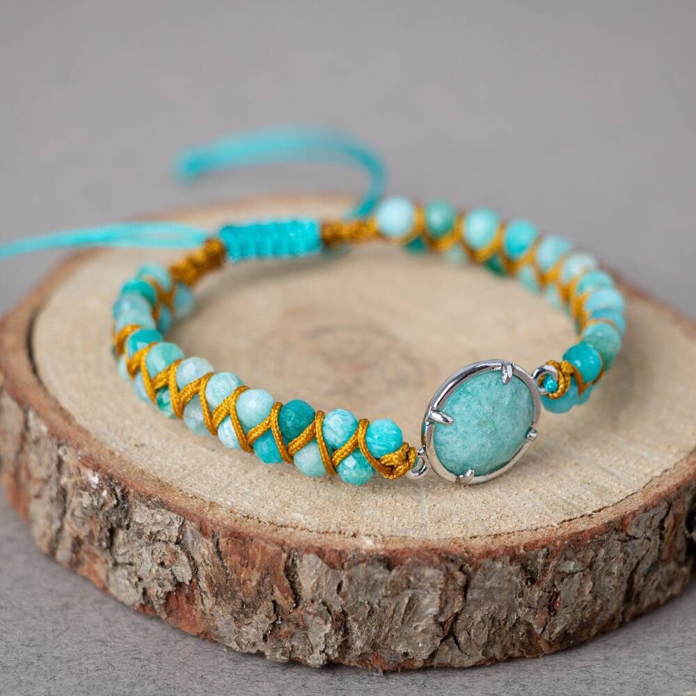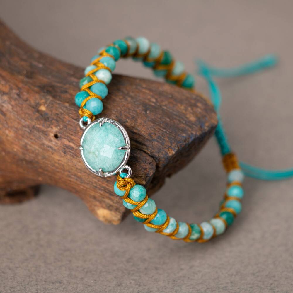 Amazonit Doğal Taş Makrome Bileklik