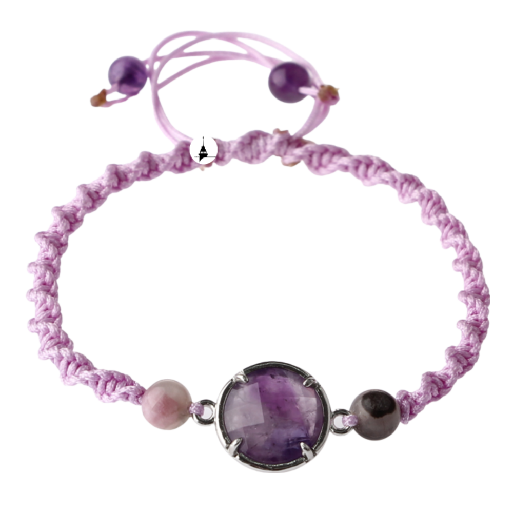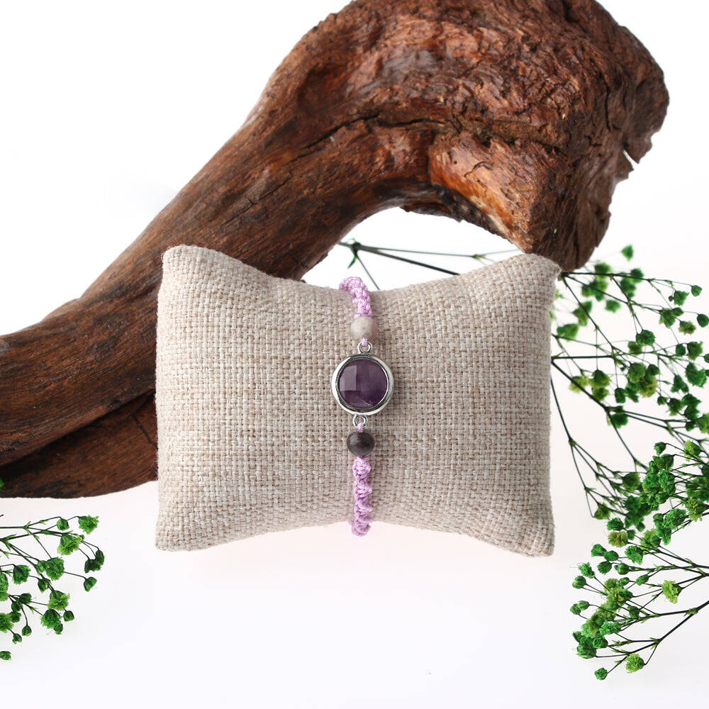 Ametist Doğal Taş Makrome Örgü Bileklik
