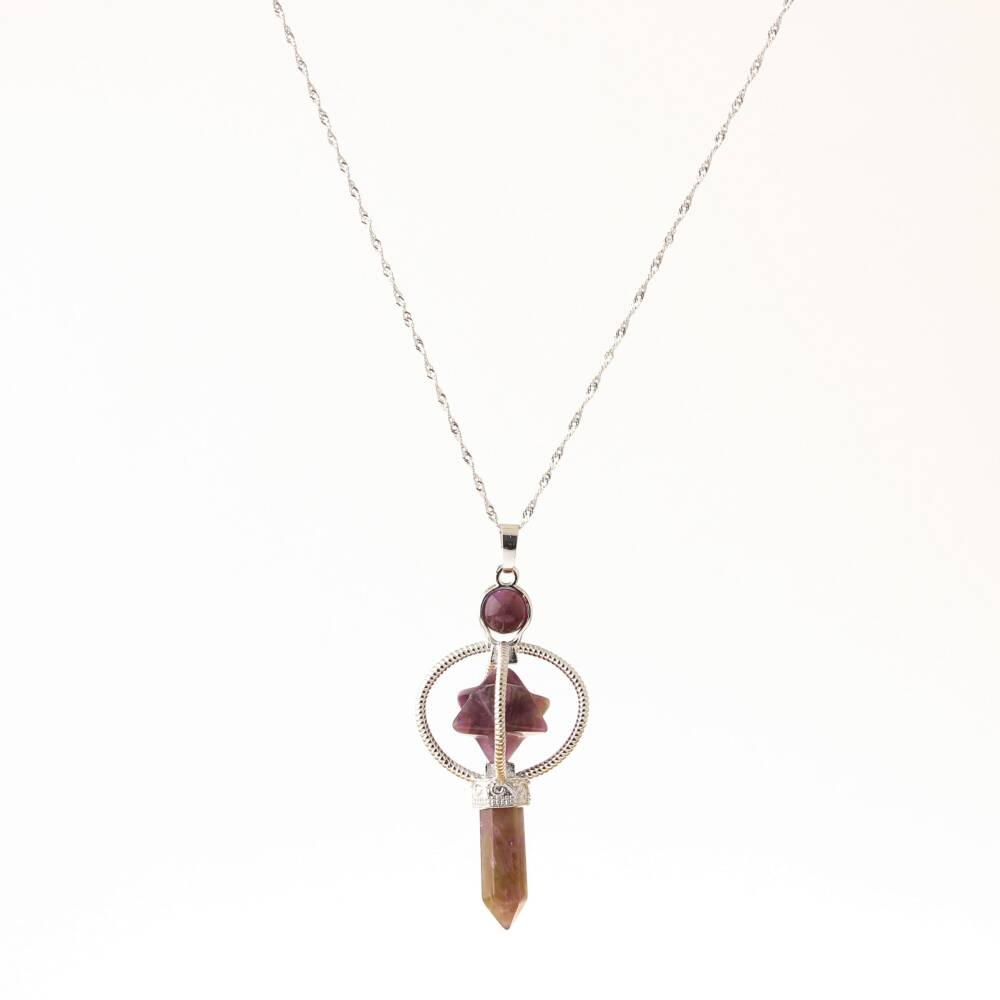Ametist Doğal Taş Markapon Yıldızlı Kolye, Gümüş Zincir - 1