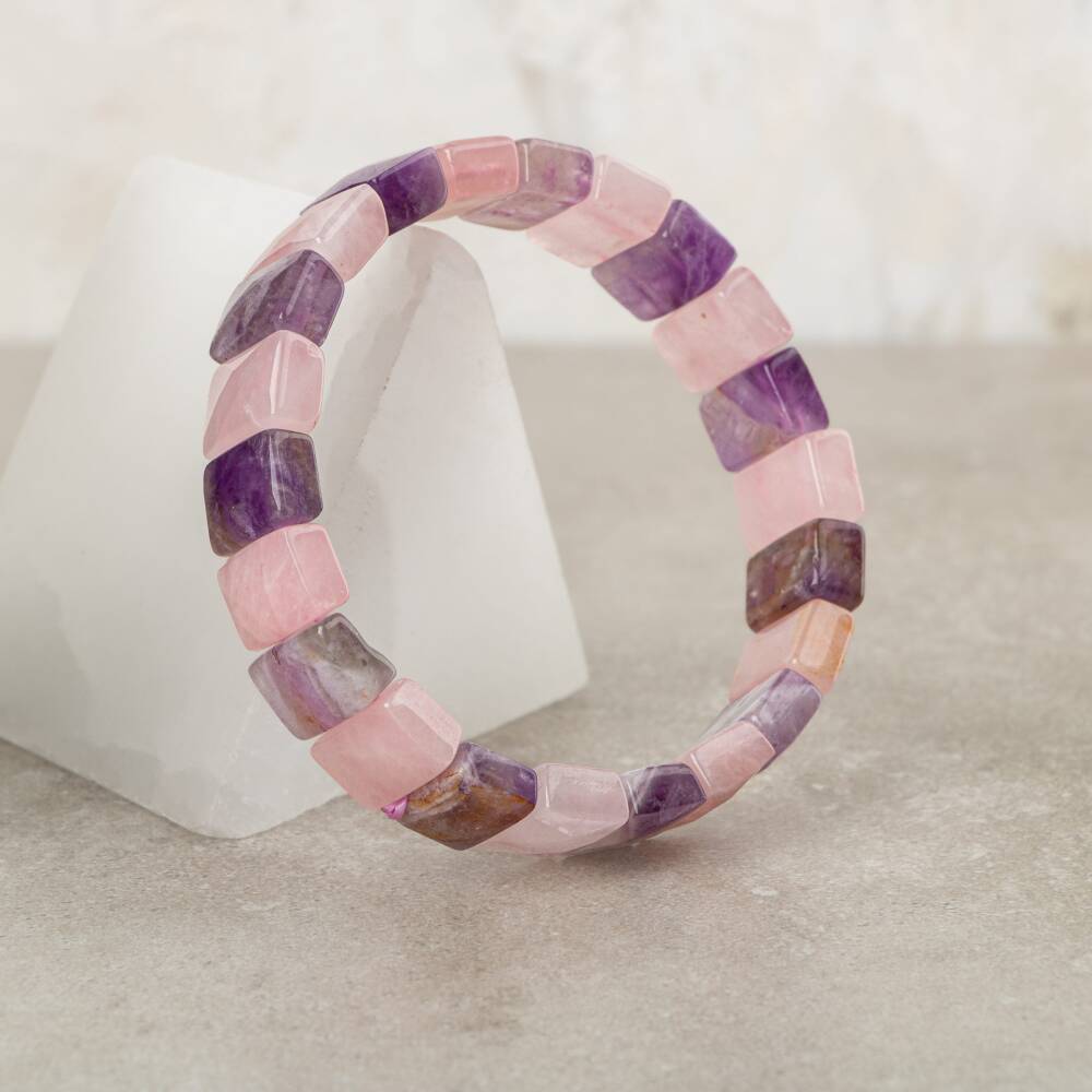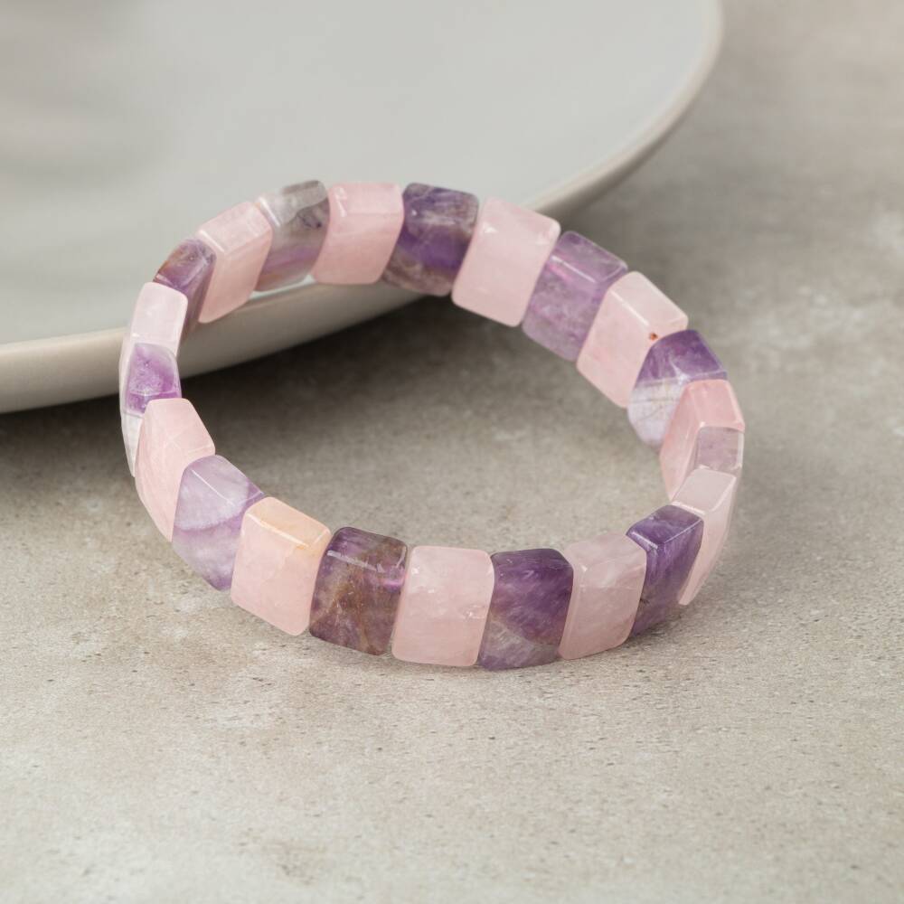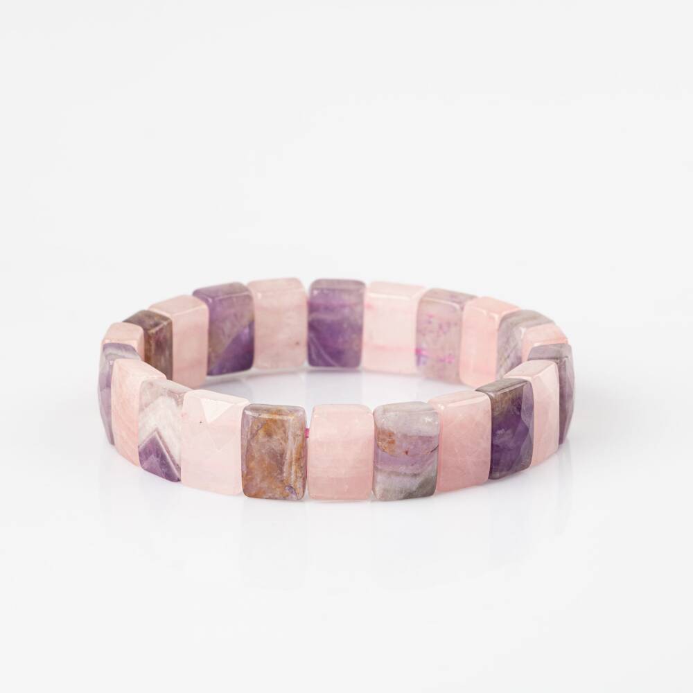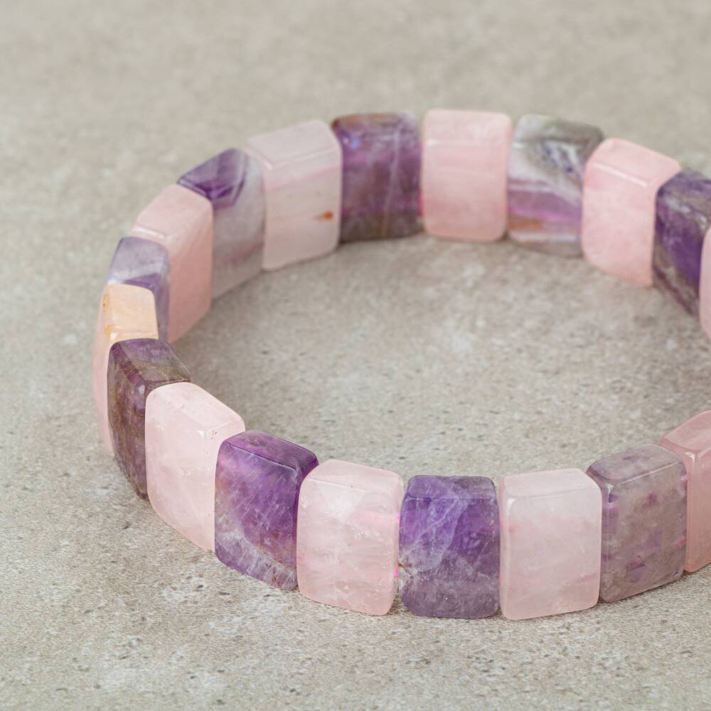 Ametist-Pembe Kuvars Doğal Taş Kare Kesim Geniş Kesim Bileklik