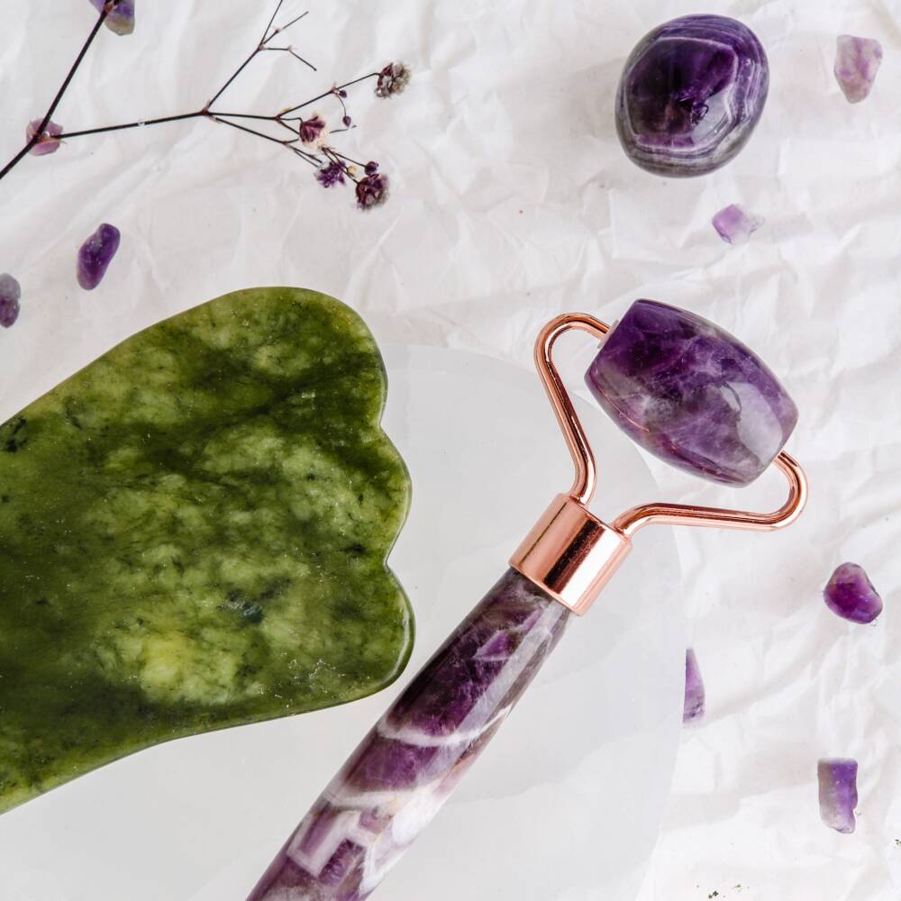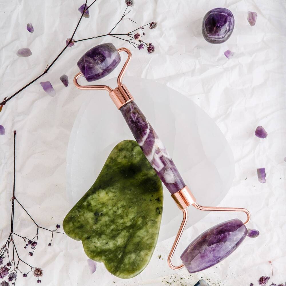 Cildinizi doğal taşların sıra dışı gücüyle buluşturarak canlandırmaya ne dersiniz? Sertifikalı Ametist Roller ve Yeşim Kaz Ayağı Gua Sha Takımı, güzellik rutininize hem geleneksel hem de modern bir dokunuş katacak. Osmanlı’dan ilham alan bu Doğal Taş set, cildinizin pürüzsüz ve canlı görünümünün yanı sıra, ruhunuza da huzur verecek. Ametist Roller, sakinleştirici etkisiyle bilinen ametist taşı sayesinde, kan dolaşımınızı hızlandırmak ve cilt sıkılığınızı artırmak için mükemmeldir. Uygulama sırasında cildinizdeki yorgunluk ve şişliği azaltır, gözeneklerinizi temizler, böylece akne ve siyah noktalara karşı koruma sağlar. Yeşim Kaz Ayağı Gua Sha ise, lenf dolaşımını artırarak yüz kaslarınızı gevşetir ve cildinizin genç, canlı ve elastik kalmasına katkıda bulunur. Ürünlerimizi kullanırken, cildinize zengin ve doğal bir bakım sunarken, stres ve kaygınızı azalttığını da hissedeceksiniz. Hem ametist roller hem de yeşim kazayağı gua sha aletinin her biri, rahatlıkla temizlenebilir ve bakımı kolaydır. Huzurlu ve parlak bir cilt için Ametist Roller ve Yeşim Kaz Ayağı Gua Sha Takımı'nı deneyin! Ürün Özellikler Kullanım Her cilt tipine uygun, haftada 2-3 kez kullanım Saklama Koşulları Kuru ve serin yerde saklayınız Temizlik Sabunlu suyla yıkayınız ve yumuşak bir bezle kurulayınız Ürün Ölçüleri Roller: 14 cm x 5 cm, Gua Sha: 7 cm x 5 cm Sertifika Ürün sertifikalıdır