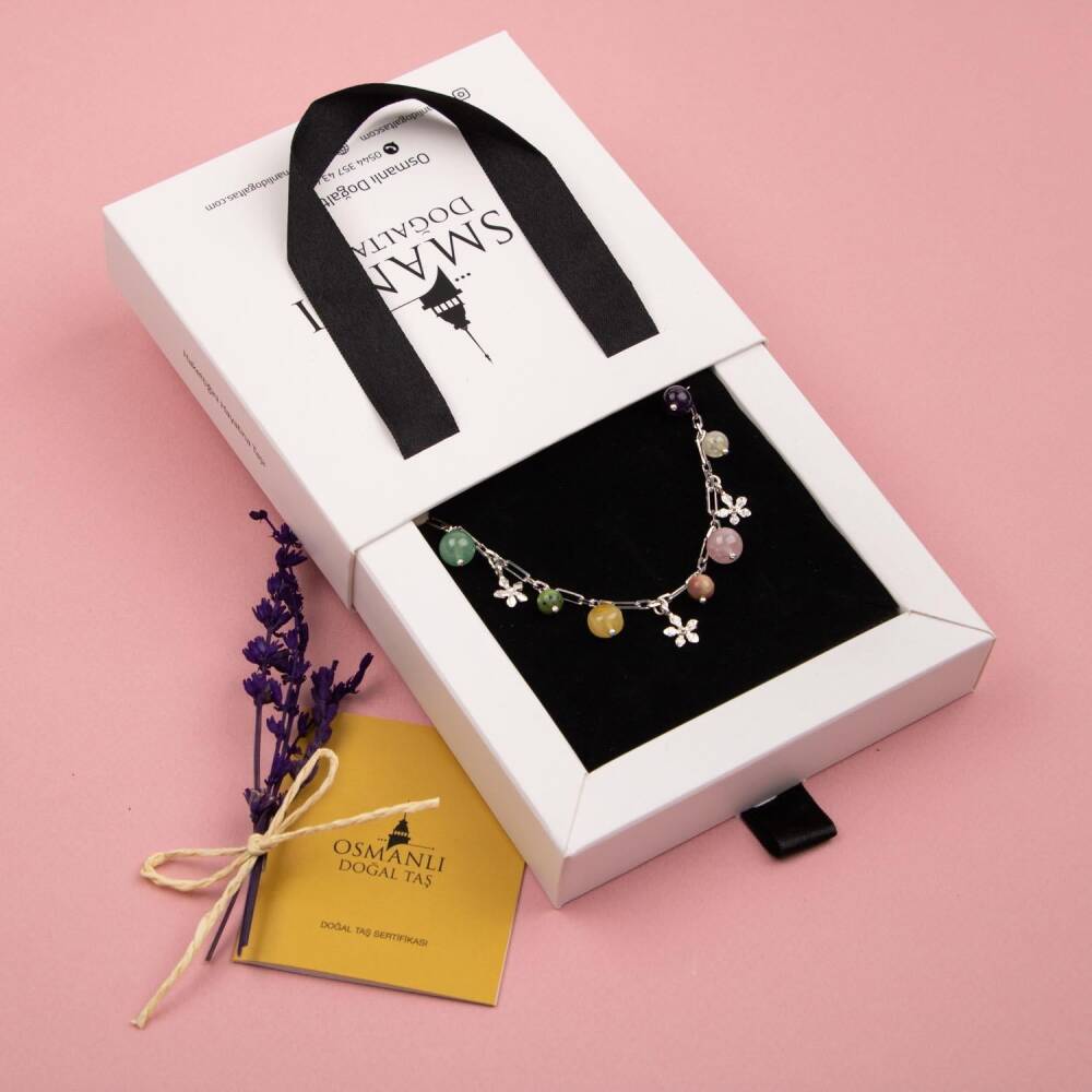 TÜM TAŞLARIMIZ SERTİFİKALI ve %100 ORJİNAL GERÇEK DOĞAL TAŞTIR. Doğal taş takılarının bu eşsiz güzelliği ve faydalarıyla müşterilerimize en kaliteli ve en özel takıları sunuyoruz. Ürün İçeriğindeki Taşlar Aşağıda Listelenmiştir. Ametist Taşı Özellikleri Bağışıklığı yükseltir, sakinleştirici ve rahatlatıcıdır, uyku problemlerine giderir ve yoğun duygu ataklarını önler. Sitrin Taşı Özellikleri Refah ve zenginlik getirir. Keyif verir, keyiflendirir. İletişimi kuvvetlendirir, konsantrasyonu artırır ve aklı geliştirir. Pembe Kuvars Taşı Özellikleri Her kadında olmazsa olmaz olan taşlardandır. Romantizmi kuvvetlendirir. Çiftler arasında aşkı ve tutkuyu artırır. Cilde parlaklık verir, güzelleştirir. Rodokrosit Taşı Özellikleri Olaylara pozitif yaklaşmayı sağlar. Migreni hafifletir. Hayatta yenilikleri teşvik eder ve destekler. Özsaygı ve değeri artırır. Kehribar Taşı Özellikleri Bebeklerde gaz sancısı ve diş ağrısını önler ve giderir. Yetişkinlerdeyse baş ağrısına iyi gelir. Ayrıca Tiroit ve Guatr rahatsızlıklarına da iyi gelmektedir. Yeşim Taşı Özellikleri Nazarı önler ve varsa giderir. Bilge bakış açısı kazandırır. Kendi kendine yeterli olmayı sağlar. Fikir üretmeyi destekler. Öz benliği açığa çıkarır. Toksinleri giderir. Yeşil Aventurin Taşı Özellikleri Kararsızlığa iyi gelir, kalbi korur, sakinlik ve dinginlik verir, korku ve huzursuzluğu giderir. Kalsit Taşı Özellikleri Dikkat eksikliğine iyi gelir. Kemik gelişimine iyi gelir. Fiziksel ve psikolojik negatif enerji ataklarına karşı koruma sağlar. BİLGİ: Doğal taşların faydaları günümüzde birçok kullanıcıdan alınan geri dönüşlerde defeatle gözlemlenmiştir. Ka n dola şımına ve s indirim sistemine bir i laç gibi dahil edilememesi; enerjileri ve kullanımı açısından sunacağı faydaya inanma ön koşulu gerektirmesiyle kesinlikle bir i laç mahiyetinde değildir. Fakat geçmişten günümüze Biruni ve İbn-i Sina gibi büyük tıp alimleri doğal taşlar üzerinde düşünmüş, araştırmış ve geliştirdikleri tedavi yöntemlerine dahil etmişlerdir.Doğal taşların faydaları bilimsel bir deney-gözlem sürecinden ziyade geçmişte yaşayan toplumların ve tıp alimlerinin kullanım amaçlarına istinaden belirlenmekte, tespit edilmektedir. Bil biliyoruz ki şifa sadece Allah’tandır. Nereden ve nasıl geleceği belli olmaz. KAYNAK: Osmanlı Doğaltaş taşların özellikleri ve kullanım bilgileri için aşağıdaki kaynaklardan faydalanmaktadır.Walter Schumann, Gemstones Of The World (Sterling Yayın Evi, 17. Baskı).Judy Hall, Değerli Taşlar Kitabı (Alfa Basım Yayın, 3. Basım, 2021)Muhammed Bin Mahmud-ı Şirvani, Tuhfe-i Muradi. Hazırlayan: Mustafa Argunşah (Türk Dil Kurumu, 1999)Patrick Voillot, Elmaslar ve Değerli Taşlar (Yapı Kredi Yayınları, 1. Baskı, 2013)