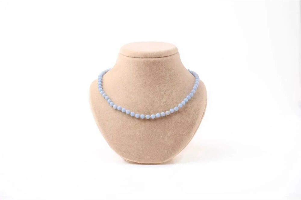 Anjelit 6 mm Düğümlü Doğal Taş Kolye
