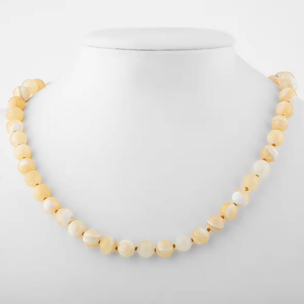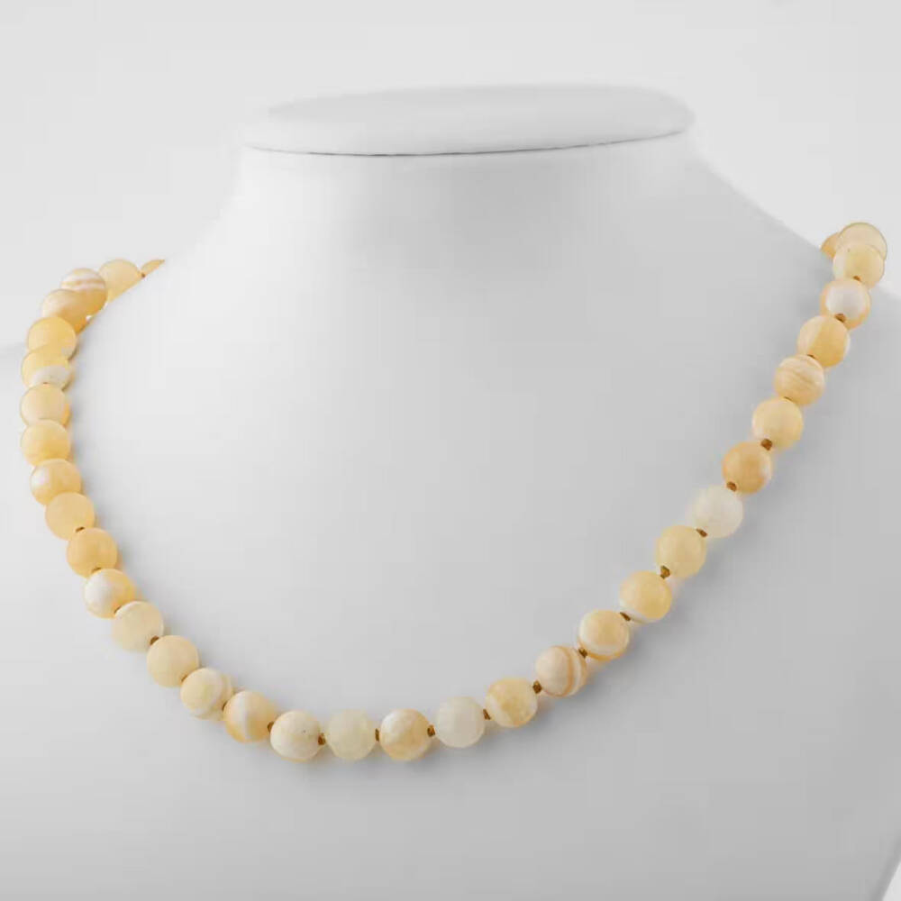 Aragonit 8 mm Düğümlü Doğal Taş Kolye