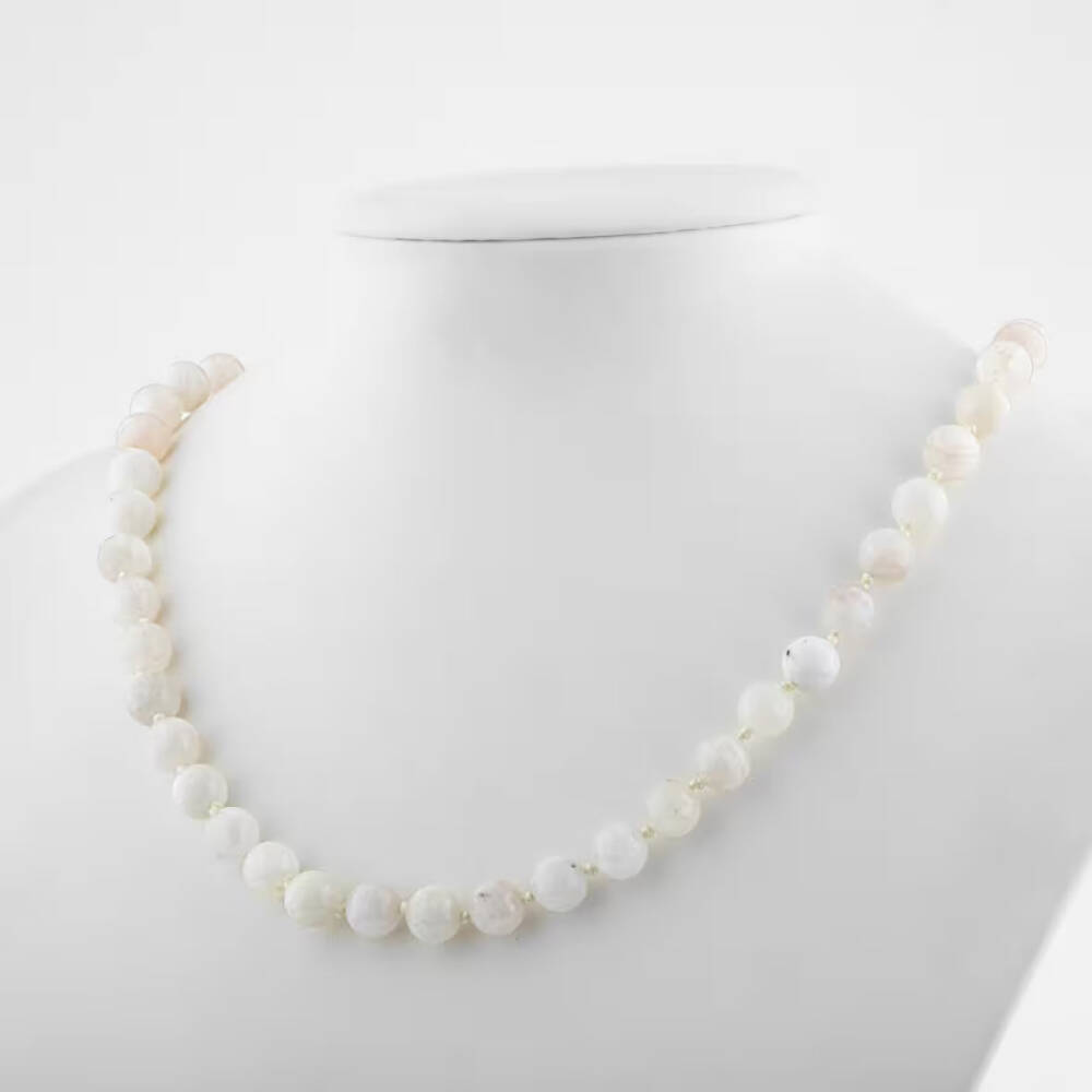 Ay Taşı 8 mm Düğümlü Doğal Taş Kolye