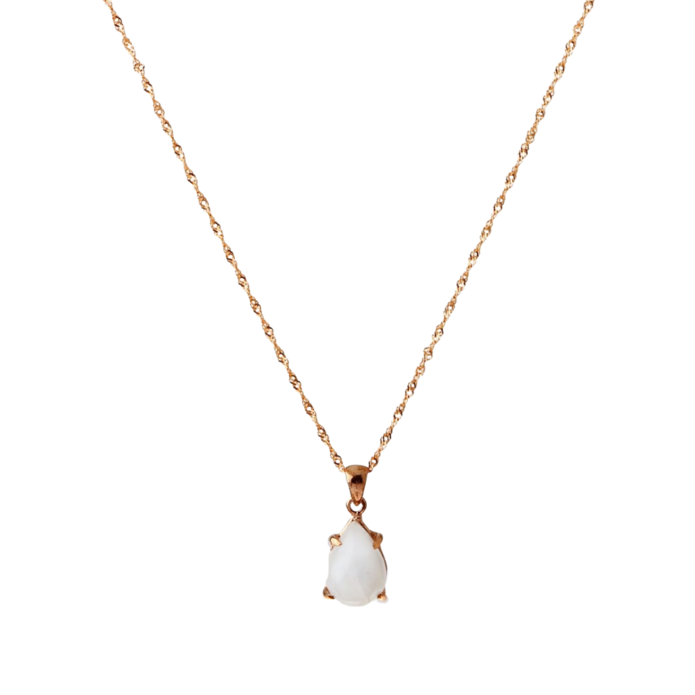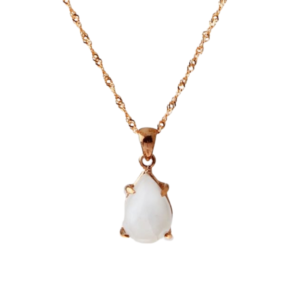 Ay Taşı Doğal Taş Gümüş Kolye, Gümüş Sarı Zincir