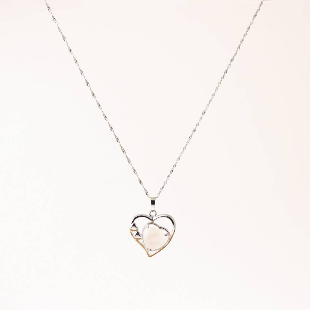Ay Taşı Doğal Taş Kalpli Kolye, Gümüş Zincir