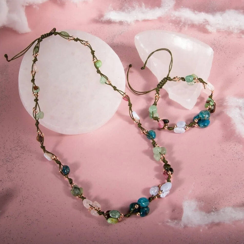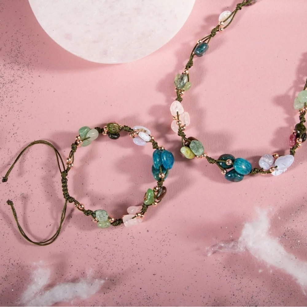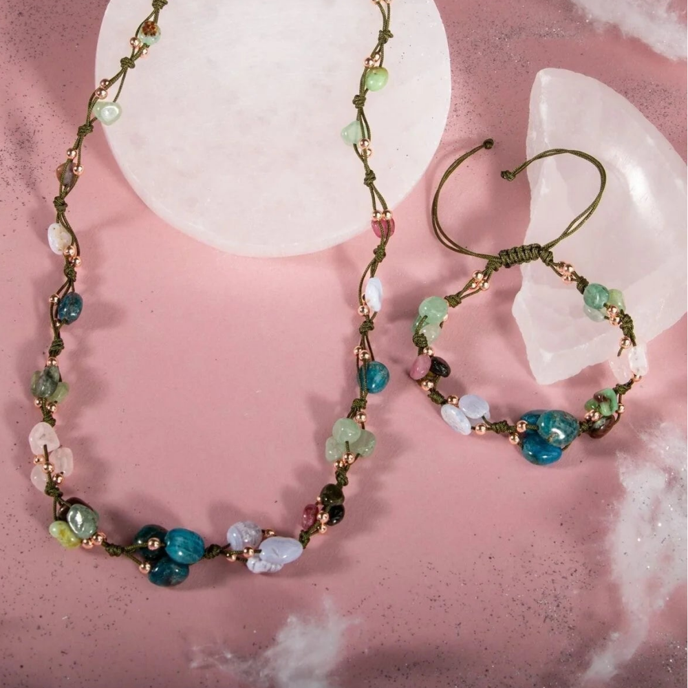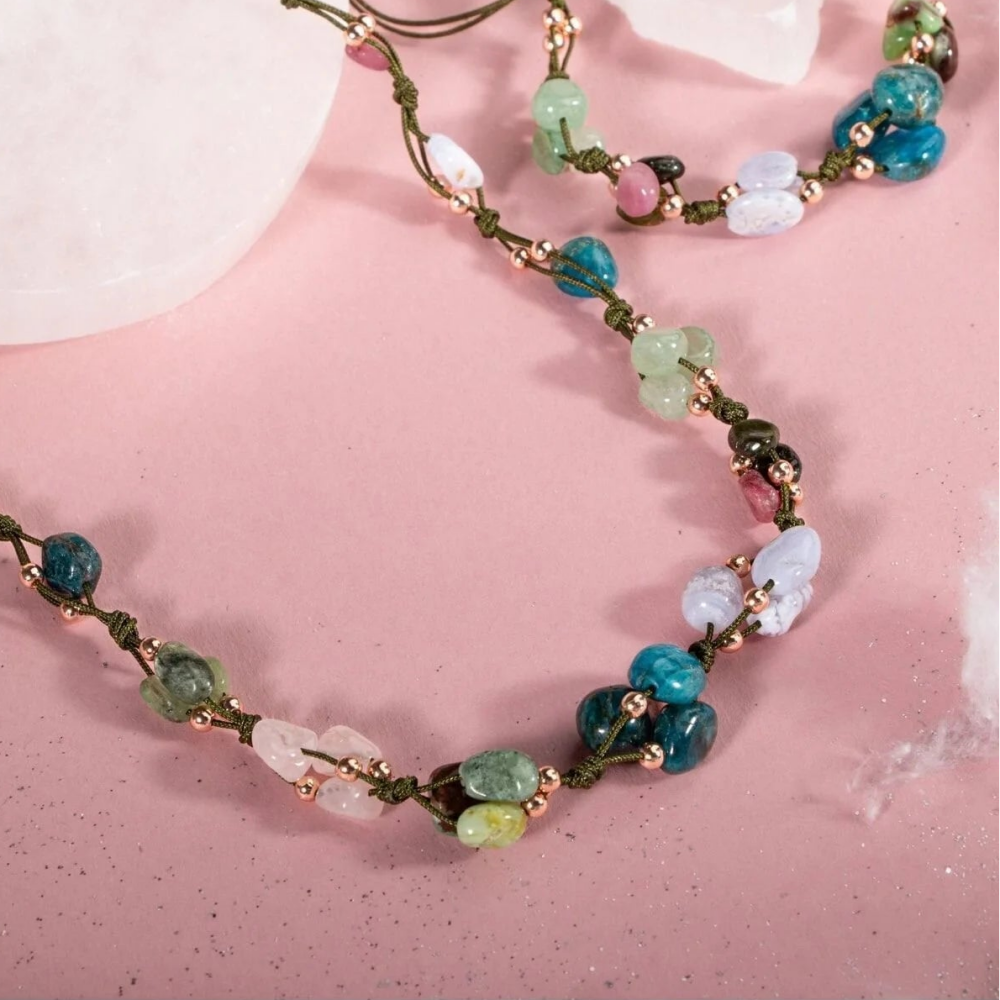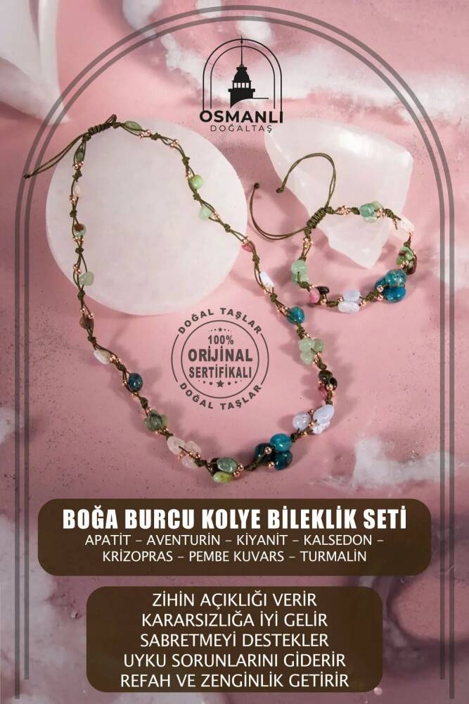 Mavi Apatit Taşı Özellikleri: Açlık hissini bastırarak kilo vermeyi destekler ve artırır, Zihin açıklığı verir, öğrenmeyi ve idrak etmeyi yükseltir.. Yeşil Aventurin Taşı Özellikleri: Kararsızlığa iyi gelir, kalbi korur, sakinlik ve dinginlik verir, korku ve huzursuzluğu giderir. Kiyanit Taşı Özellikleri: Sabretmeyi destekler. Bir şeylerin farkına varmayı, gerçekleri görebilmeyi ve bir şeylerin bilincinde olmayı artırır. İletişimi becerisini ve iletişimi yükseltir. Turmalin Taşı Özellikleri: Uyku sorunlarını giderir. Çevreyi ve kendimizi tanımamızı sağlar. Sabrı artırır. Omurga sağlığını destekler. Merhameti yükseltir. Pembe Kuvars Taşı Özellikleri: Her kadında olmazsa olmaz olan taşlardandır. Romantizmi kuvvetlendirir. Çiftler arasında aşkı ve tutkuyu artırır. Cilde parlaklık verir, güzelleştirir. Kalsedon Taşı Özellikleriİletişim taşı olarak bilinir, konuşmacılara(hatiplere) akıcı ve etkili bir konuşma becerisi sağladığı düşünülmüştür. Beden, zihin ve ruhu aynı çizgide birleştirir Krizopras Taşı Özellikleri: Refah ve Zenginlik getirir. Girişimci ve ihtiyatlı bakış açısı kazandırır. Akıcı konuşma becerisi sağlar.
