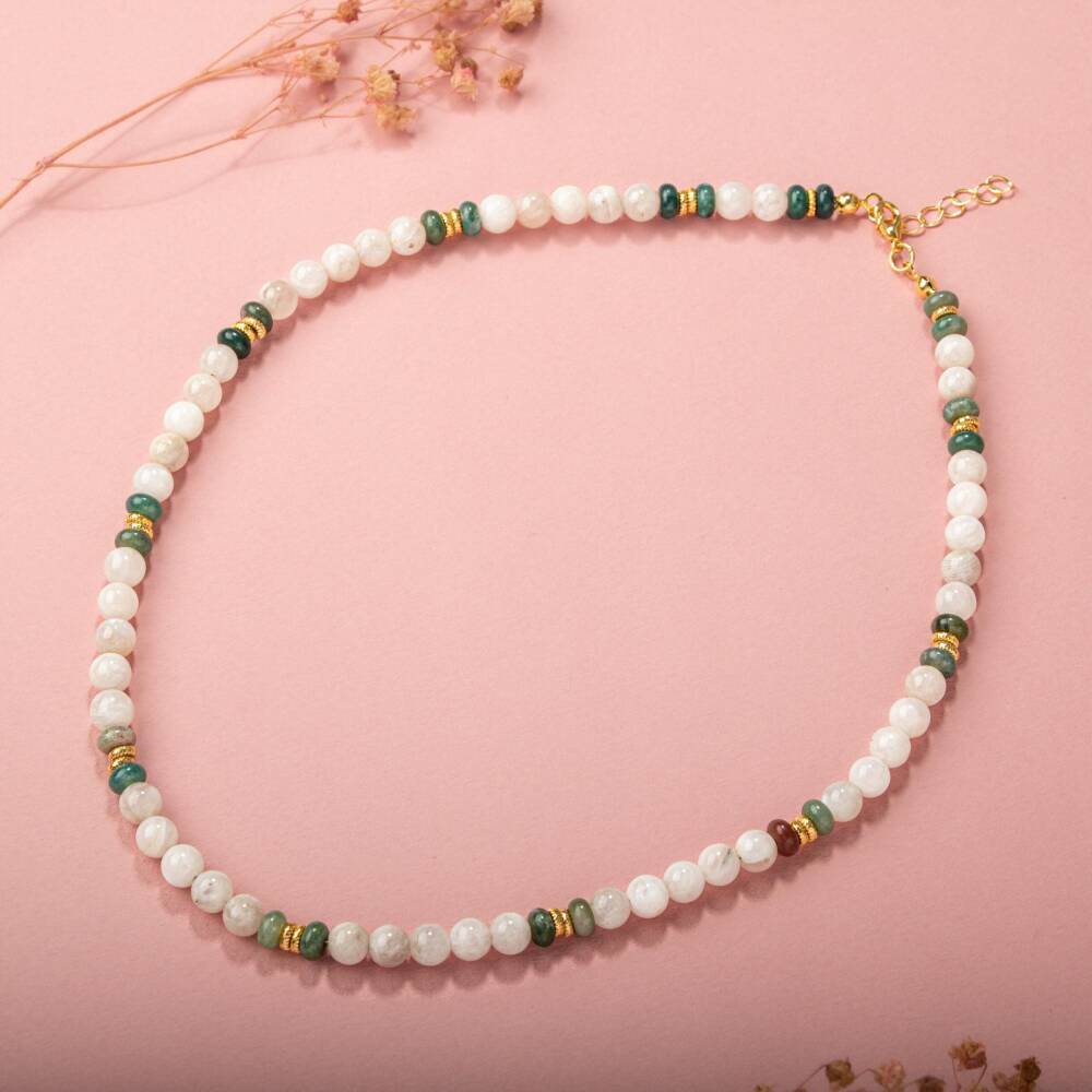 Bordo Granat Lal Doğal Taş Gümüş Zincir Kolye - 2