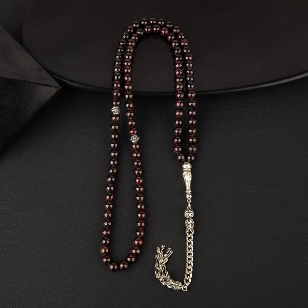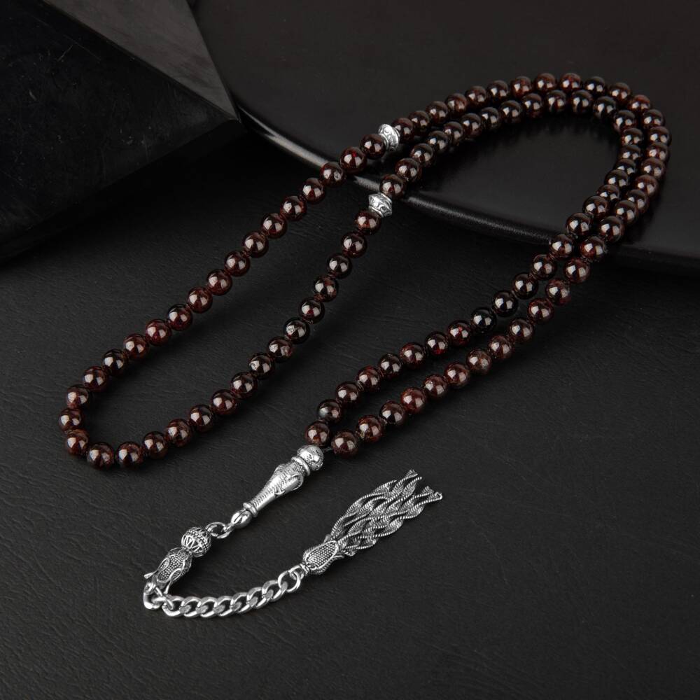 Bordo Granat Lal Doğal Taş Tesbih 99luk - 6mm - 1