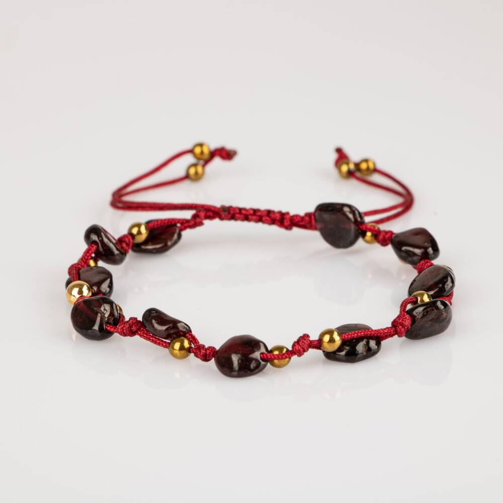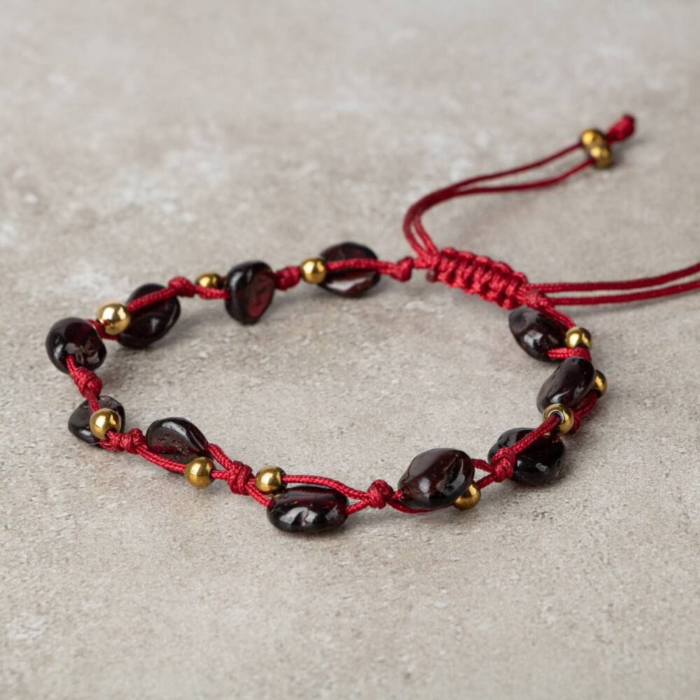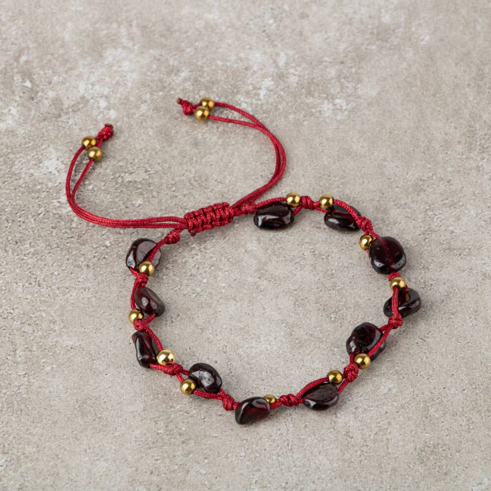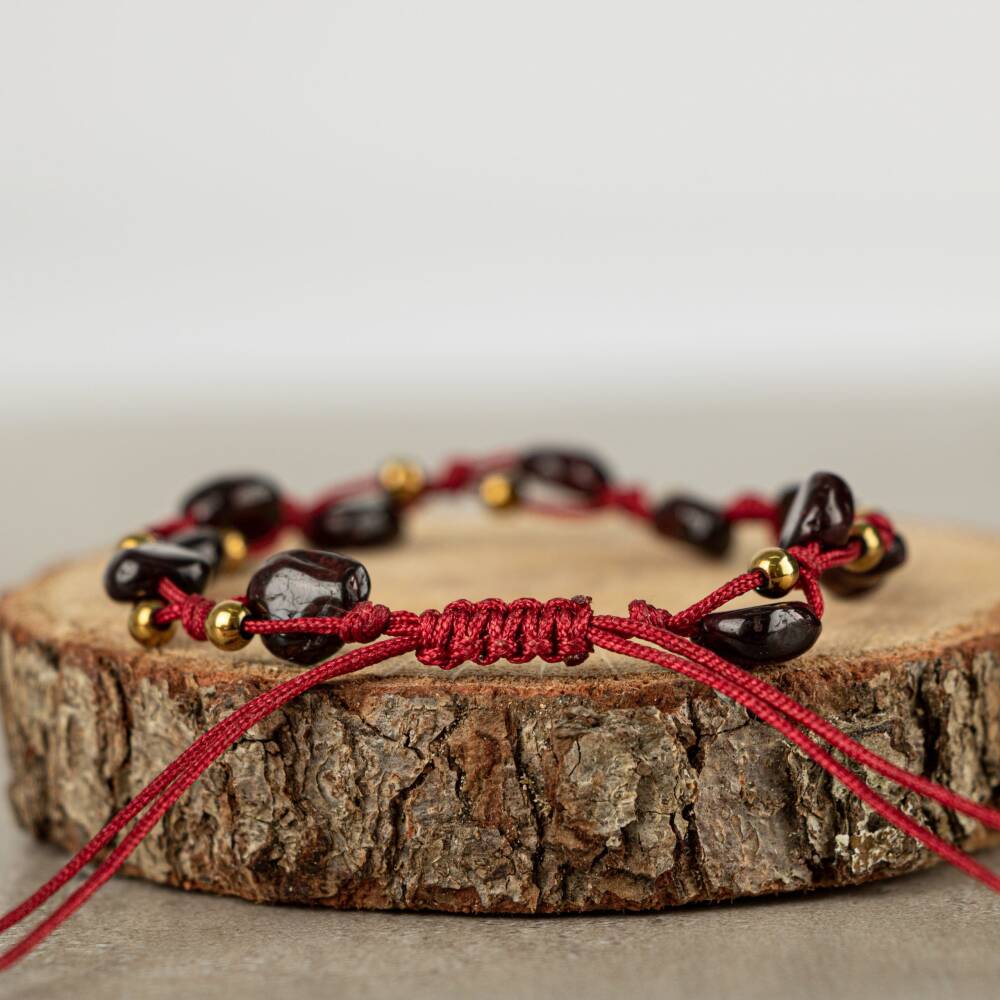Bordo Granat Lal Natürel Kesim Doğal Taş Makrome Bileklik