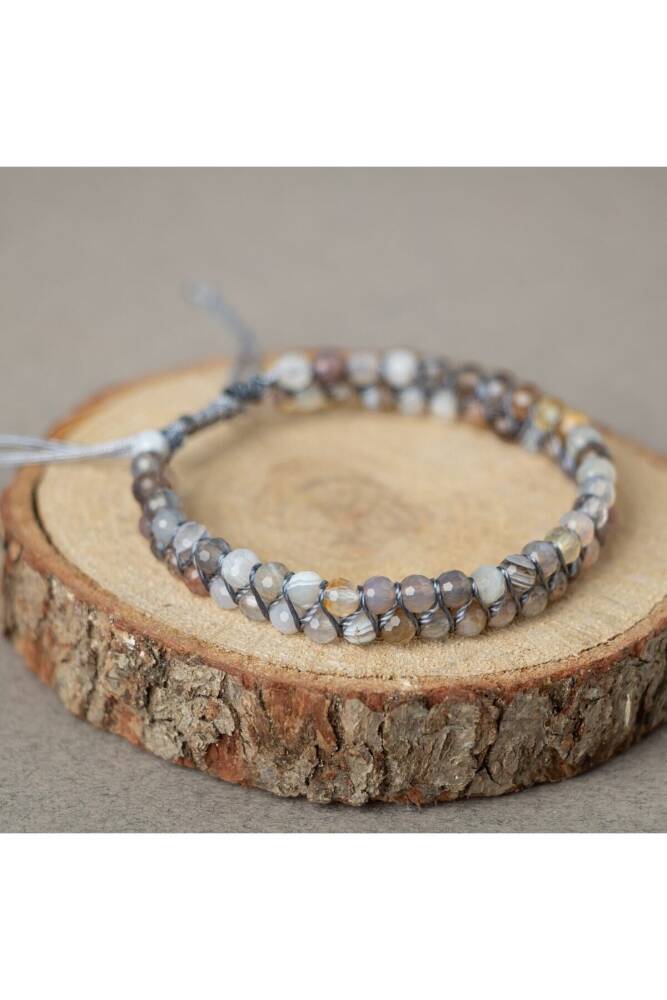 Botswana Akiği 3-4mm Çift Sıra Doğal Taş Bileklik - 1