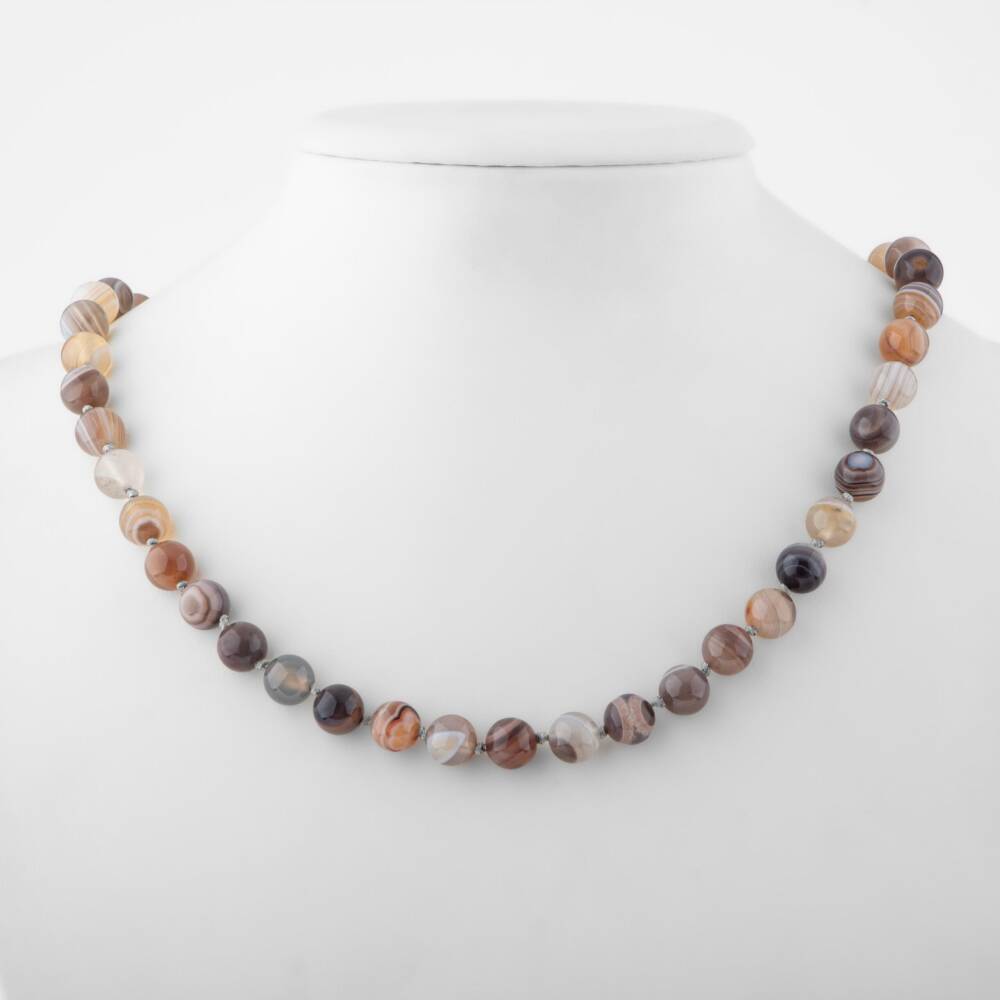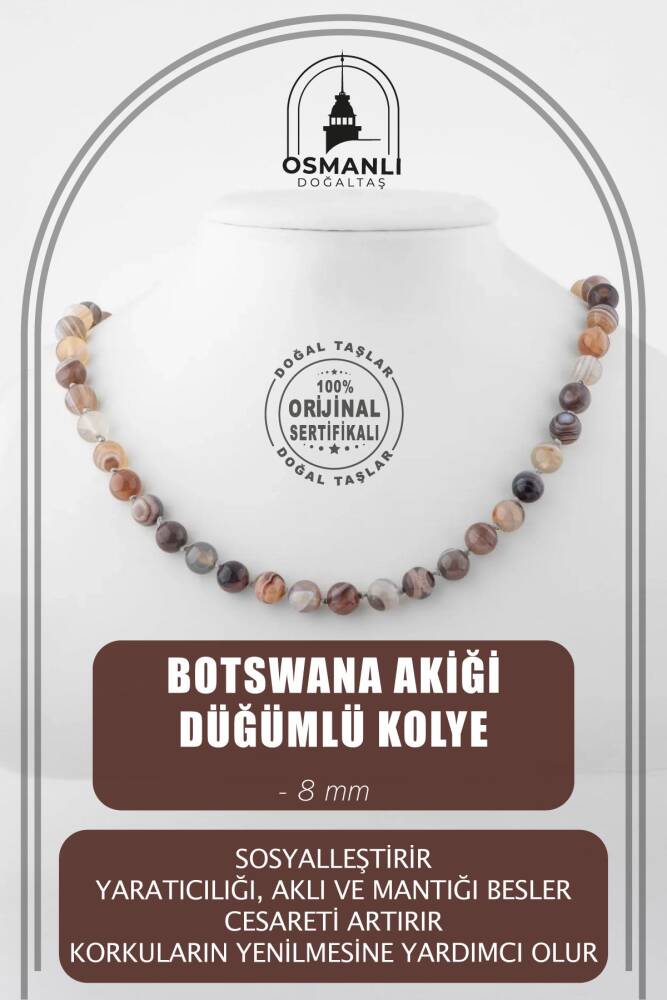 Botswana Akiği 8 mm Düğümlü Doğal Taş Kolye - 1