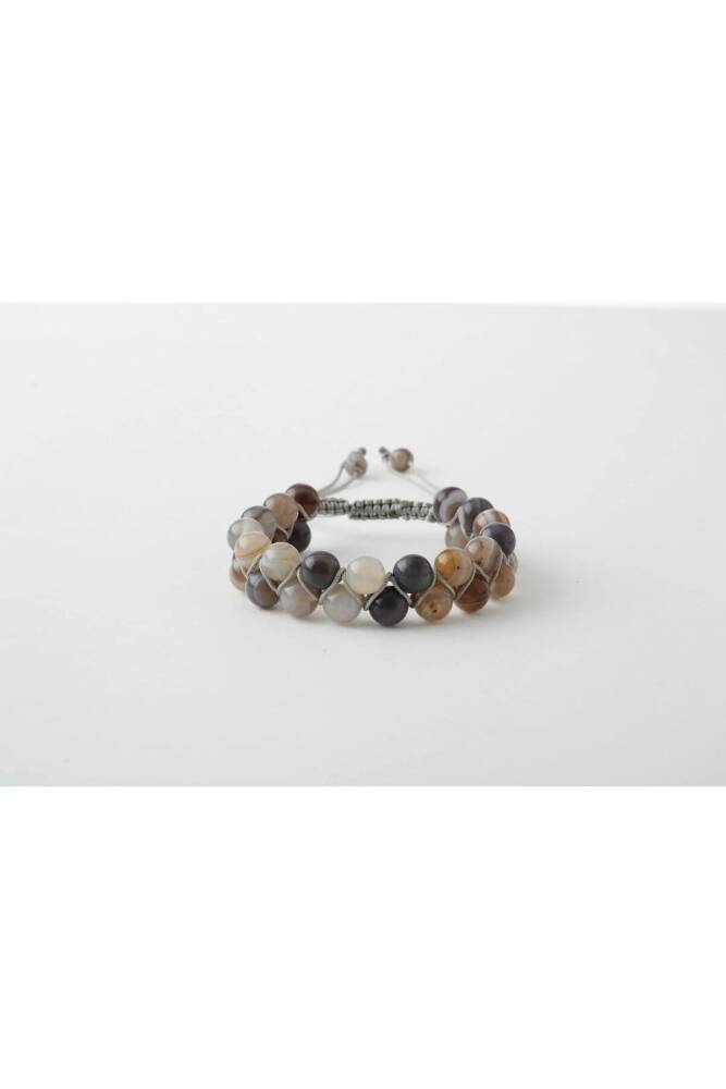 Botswana Akiği 8mm Çift Sıra Makrome Doğal Taş Bileklik - 1