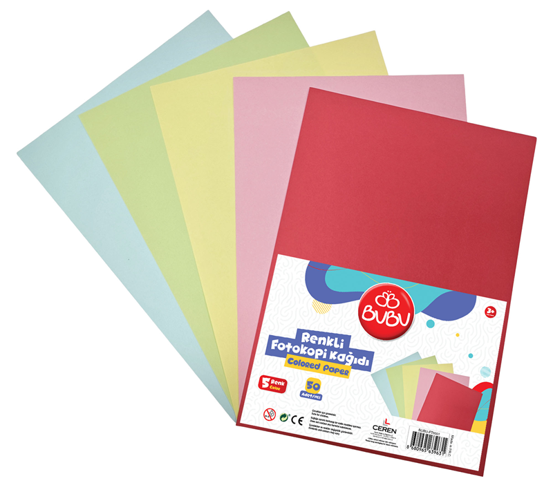 Bu Bu Renkli Fotokopi Kağıdı 5 Renk 50'Li