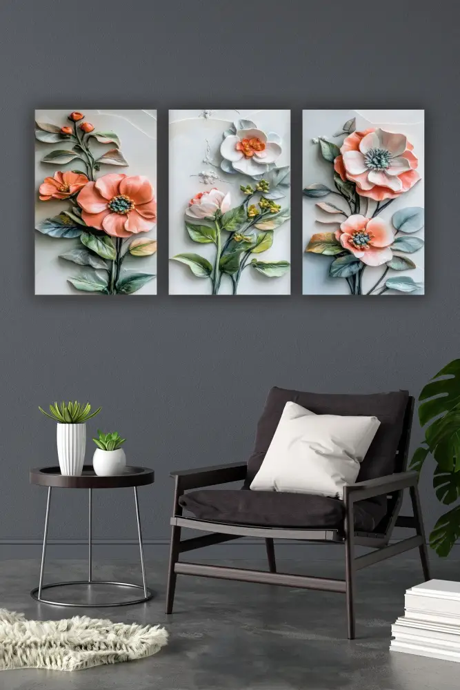• Set İçeriği: 3 adet tablo (çiçek desenli tasarımlar)