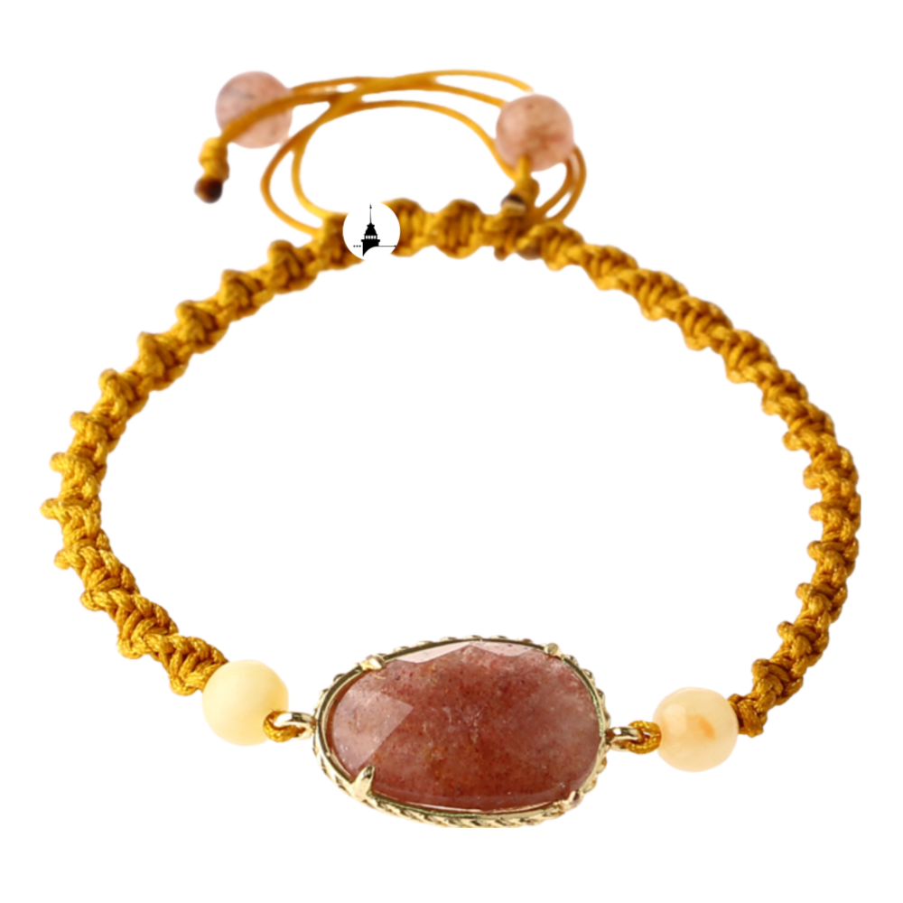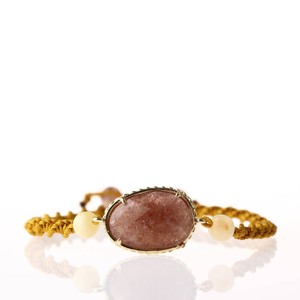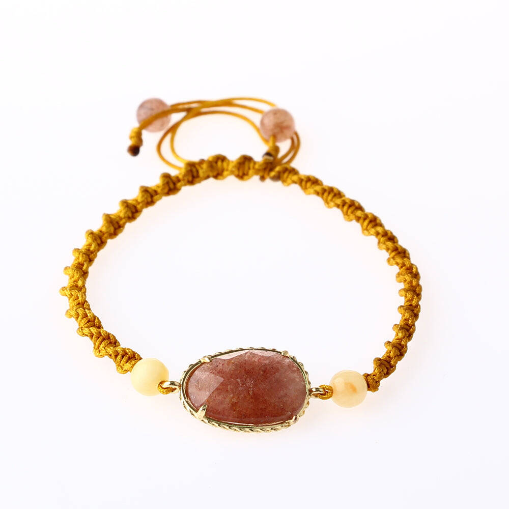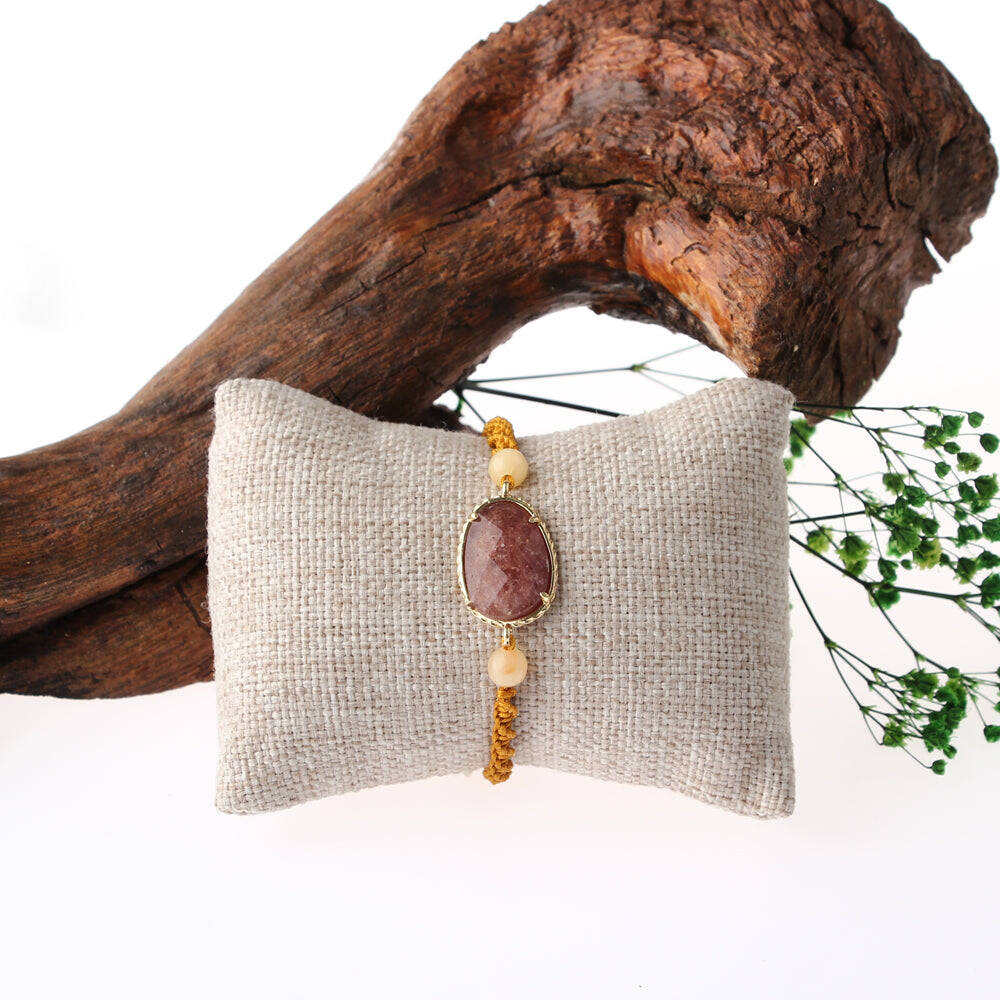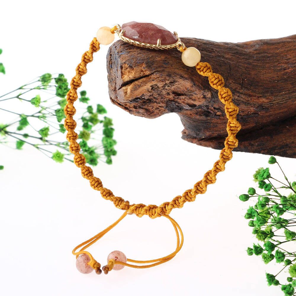 Çilek Kuvars-Kalsit Doğal Taş Makrome Örgü Bileklik