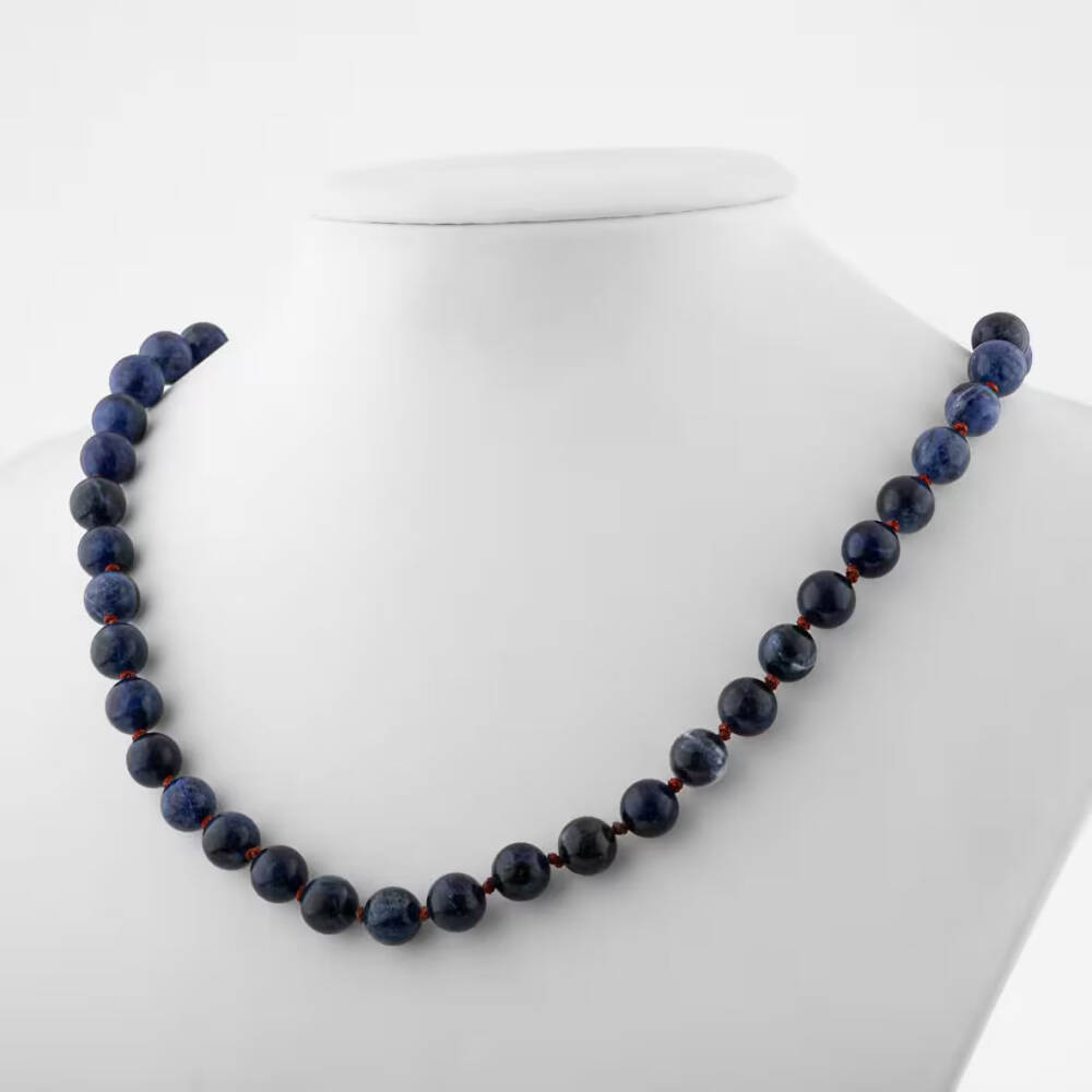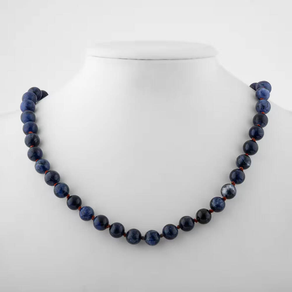 Dumortierit 8 mm Düğümlü Doğal Taş Kolye - 1
