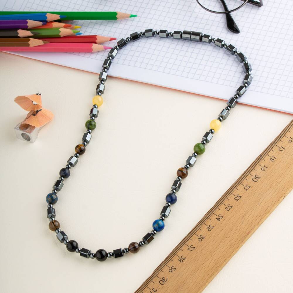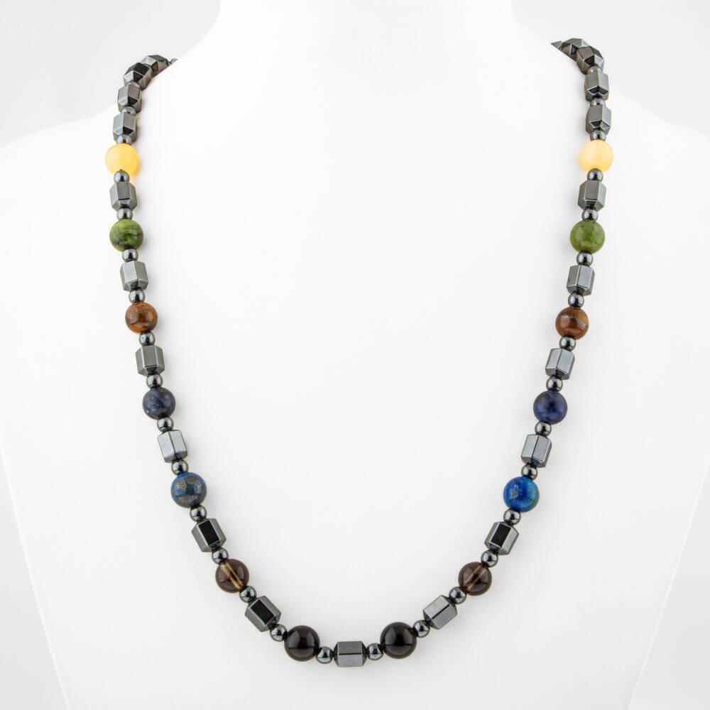 'TÜM TAŞLARIMIZ SERTİFİKALI ve %100 ORJİNAL GERÇEK DOĞAL TAŞTIR.Doğal taş takılarının bu eşsiz güzelliği ve faydalarıyla müşterilerimize en kaliteli ve en özel takıları sunuyoruz. Her bir takı, tasarımcılarımız tarafından özenle hazırlanmış, doğal taşların renkleri ve enerjileri ile birlikte, size en uygun olanı seçmenizi sağlar.Doğal taş takılarımız, herhangi bir moda stiline mükemmel bir şekilde uyum sağlar. Aynı zamanda doğanın eşsiz güzelliklerini keşfetmek isteyenler için de harika bir seçenek sunarlar. Kendinizi özel hissetmek istediğinizde, doğal taş takılarımız sizin için mükemmel bir seçenek olacaktır.Ürün İçeriğindeki Taşlar Aşağıda Listelenmiştir.Hematit Taşı ÖzellikleriHayatta kalma iç güdüsünü artırır. Cesaret, irade ve özgüven duygularını artırır. Cesaret, irade ve özgüven duygularını yükseltir. Siyah Turmalin Taşı ÖzellikleriUyku sorunlarını giderir. Çevreyi ve kendimizi tanımamızı sağlar. Sabrı artırır. Omurga sağlığını destekler. Merhameti yükseltir. Dumanlı Kuvars Taşı ÖzellikleriGeçmiş Takılı kalmayı atlatmayı sağlar. Tolerans ve sabrı artırır. Zor durumları çözmede yardımcı olur. Korkularla yüzleşmeyi sağlar. Lapis Lazuli Taşı ÖzellikleriHafızayı kuvvetlendirir. İtibarı, saygınlığı yükseltir. Dikkat eksikliğini giderirken konsantrasyonu kuvvetlendirir, artırır. Duyguları ve hisleri kolaylıkla ifade edebilmeyi, söyleyebilmeyi sağlar. Sodalit Taşı ÖzellikleriAkılcı bir yaklaşım kazandırır. Duyguları dengeli hale getirir. Kişinin kendisiyle barış içinde yaşamasını sağlar. Bağışıklığı kuvvetlendirir. Sindirimi destekler. Kaplan Gözü Taşı Özellikleriİrade gücünü yükseltir. Nazara iyi gelir. Odaklanmayı artırır. Baş ağrısını hafifletir. Berrak bir bakış açısı sunar. Yeşim Taşı ÖzellikleriNazarı önler ve varsa giderir. Bilge bakış açısı kazandırır. Kendi kendine yeterli olmayı sağlar. Fikir üretmeyi destekler. Öz benliği açığa çıkarır. Toksinleri giderir. Kalsit Taşı ÖzellikleriDikkat eksikliğine iyi gelir. Kemik gelişimine iyi gelir. Fiziksel ve psikolojik negatif enerji ataklarına karşı koruma sağlar. -----------BİLGİ:Doğal taşların faydaları günümüzde birçok kullanıcıdan alınan geri dönüşlerde defeatle gözlemlenmiştir. Kan dolaşımına ve sindirim sistemine bir ilaç gibi dahil edilememesi; enerjileri ve kullanımı açısından sunacağı faydaya inanma ön koşulu gerektirmesiyle kesinlikle bir ilaç mahiyetinde değildir. Fakat geçmişten günümüze Biruni ve İbn-i Sina gibi büyük tıp alimleri doğal taşlar üzerinde düşünmüş, araştırmış ve geliştirdikleri tedavi yöntemlerine dahil etmişlerdir.Doğal taşların faydaları bilimsel bir deney-gözlem sürecinden ziyade geçmişte yaşayan toplumların ve tıp alimlerinin kullanım amaçlarına istinaden belirlenmekte, tespit edilmektedir. Bil biliyoruz ki şifa sadece Allah’tandır. Nereden ve nasıl geleceği belli olmaz.KAYNAK:Osmanlı Doğaltaş taşların özellikleri ve kullanım bilgileri için aşağıdaki kaynaklardan faydalanmaktadır.Walter Schumann, Gemstones Of The World (Sterling Yayın Evi, 17. Baskı).Judy Hall, Değerli Taşlar Kitabı (Alfa Basım Yayın, 3. Basım, 2021)Muhammed Bin Mahmud-ı Şirvani, Tuhfe-i Muradi. Hazırlayan: Mustafa Argunşah (Türk Dil Kurumu, 1999)Patrick Voillot, Elmaslar ve Değerli Taşlar (Yapı Kredi Yayınları, 1. Baskı, 2013)