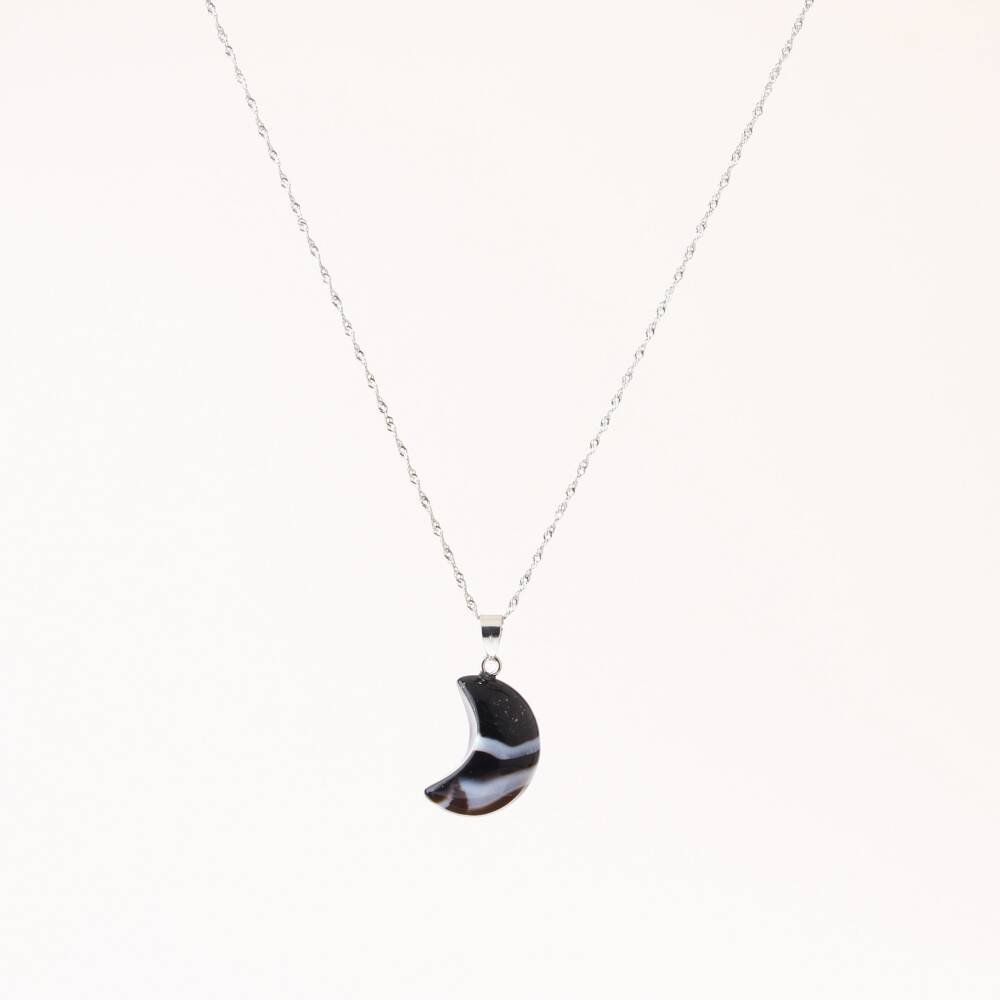 Göz Akik Doğal Taş Hilalli Kolye, Gümüş Zincir - 1