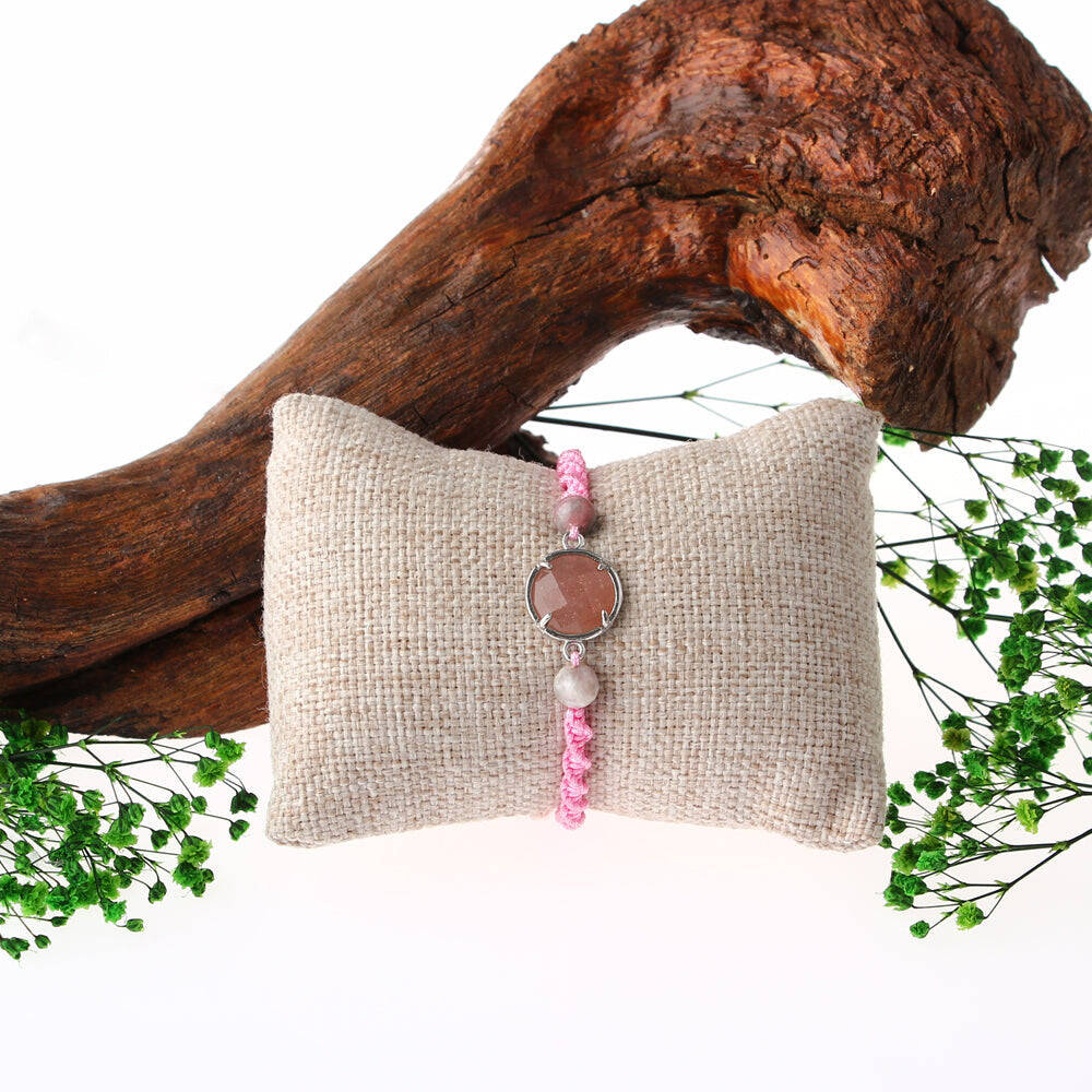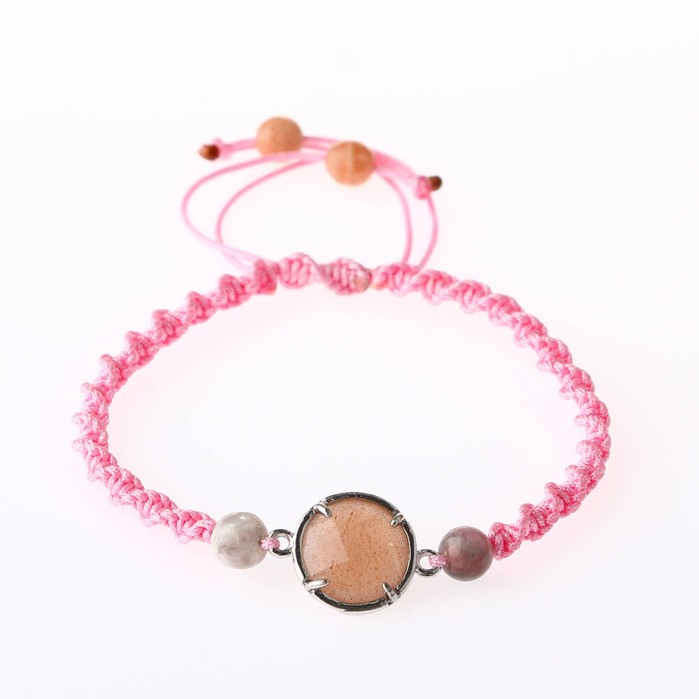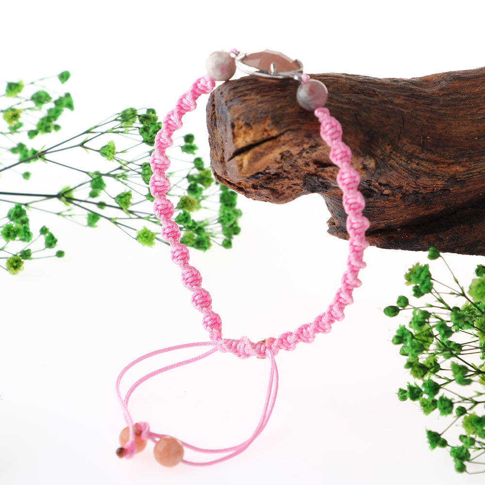 Güneş Taşı-Lepidolit Doğal Taş Makrome Örgü Bileklik
