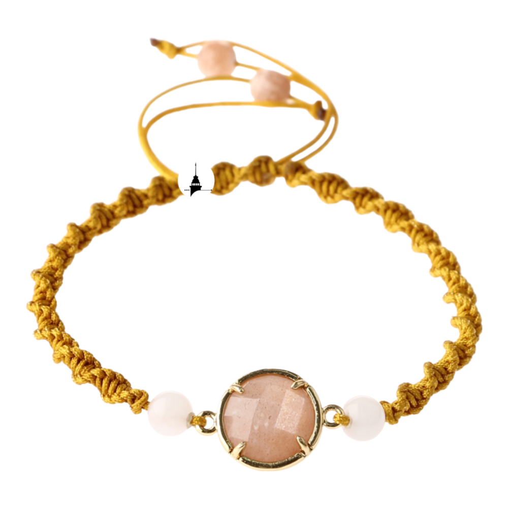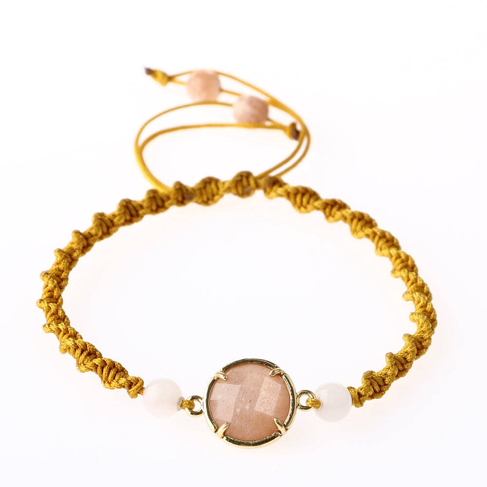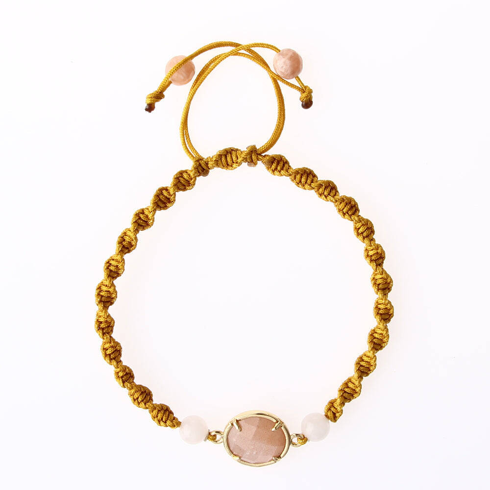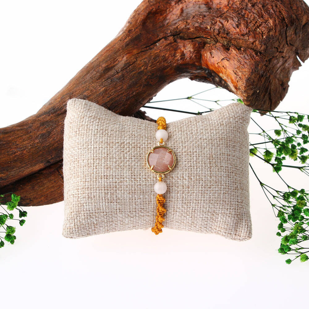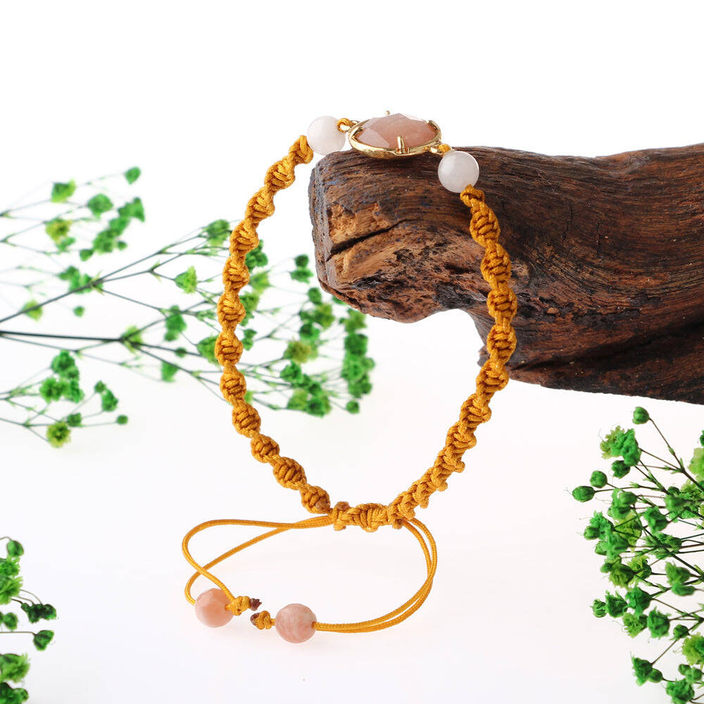 Güneş Taşı-Pembe Kuvars Doğal Taş Makrome Örgü Bileklik