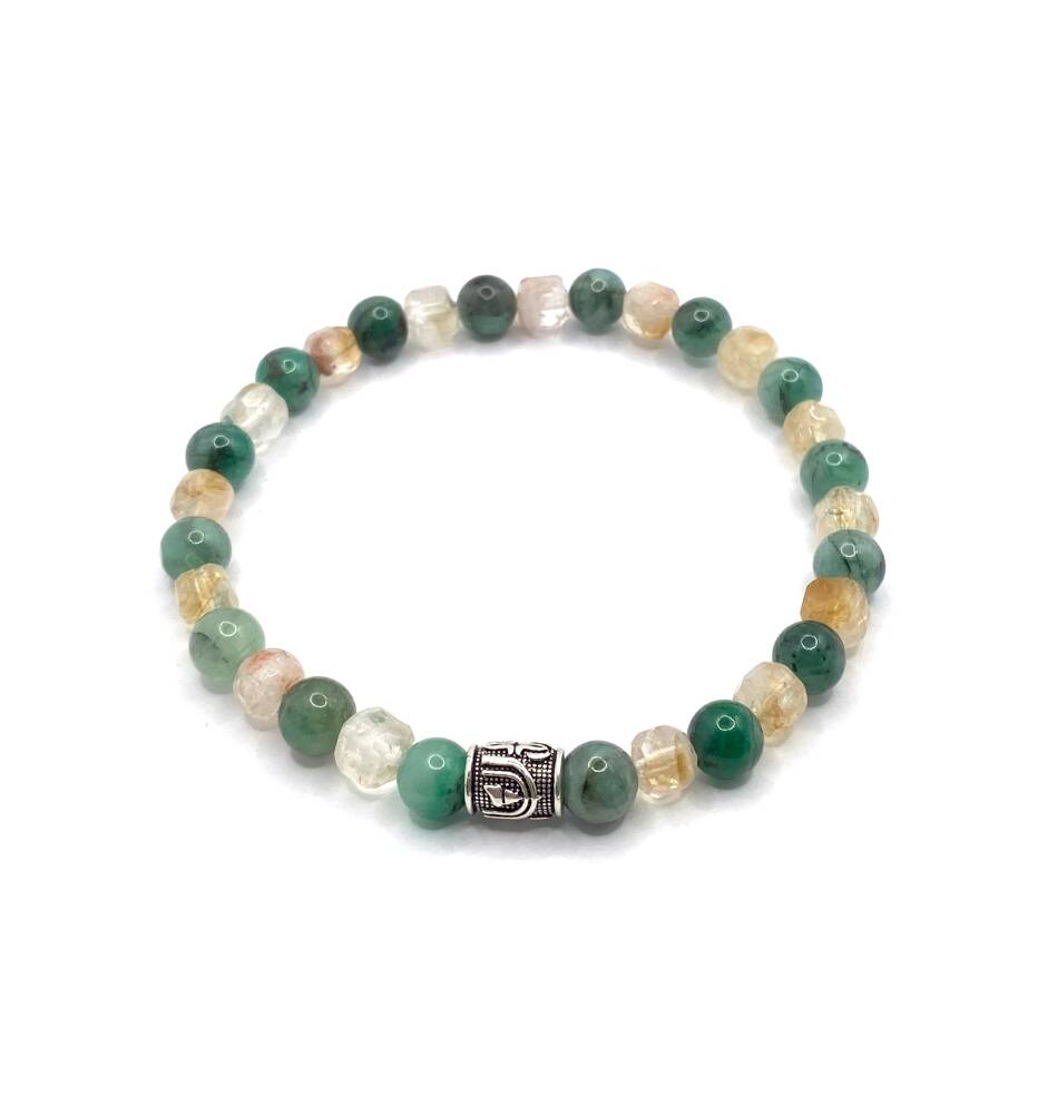 Hakiki Doğal Sertifikalı Zümrüt - Sitrin Doğal Taş Gümüş Aparatlı Misinalı Bileklik Fasetli 6mm