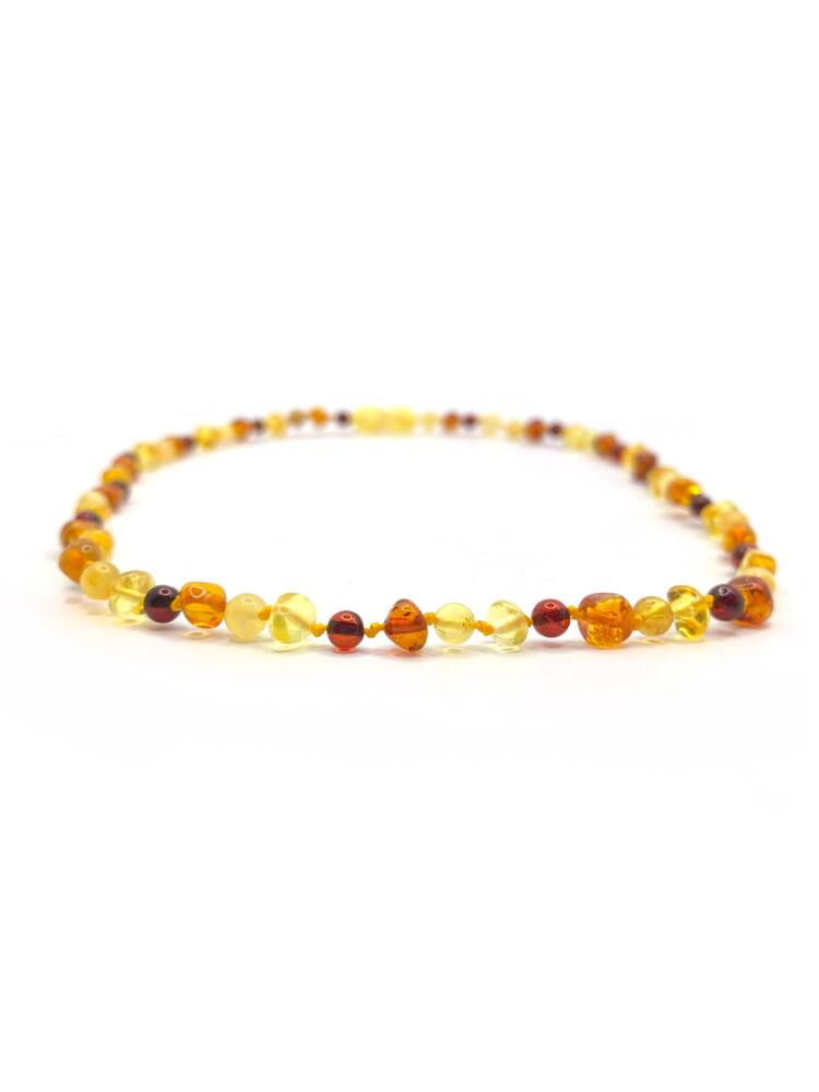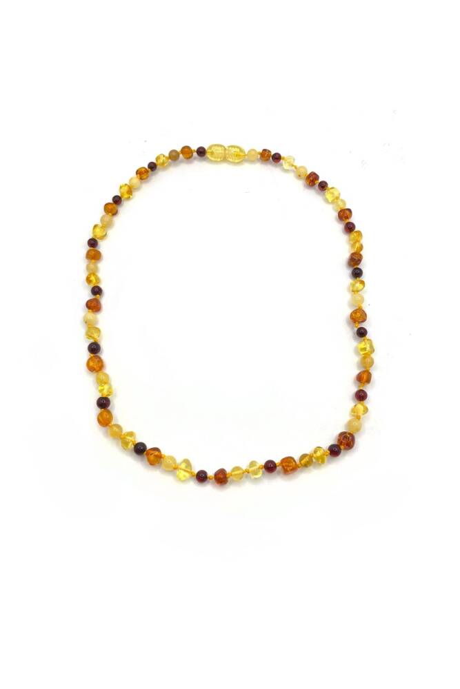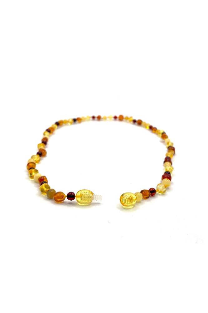 Hakiki Sertifikalı Çocuk Kehribar İpli Kopmaz Kolye 4-6 Yaş Kırmızı Turuncu Sarı Kehribar Doğal Taş
