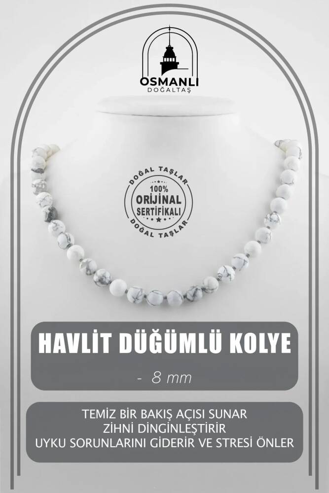Havlit 8 mm Düğümlü Doğal Taş Kolye - 1