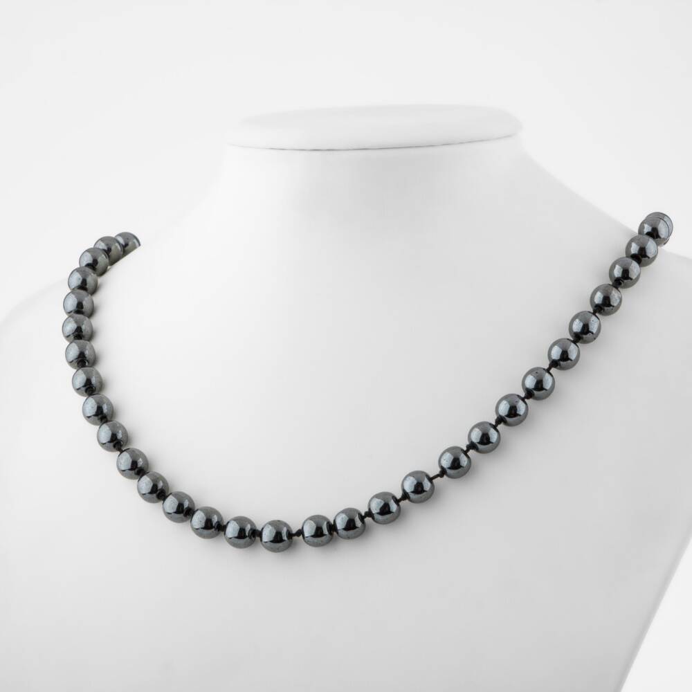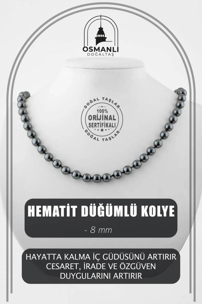 Hematit 8 mm Düğümlü Doğal Taş Kolye - 1
