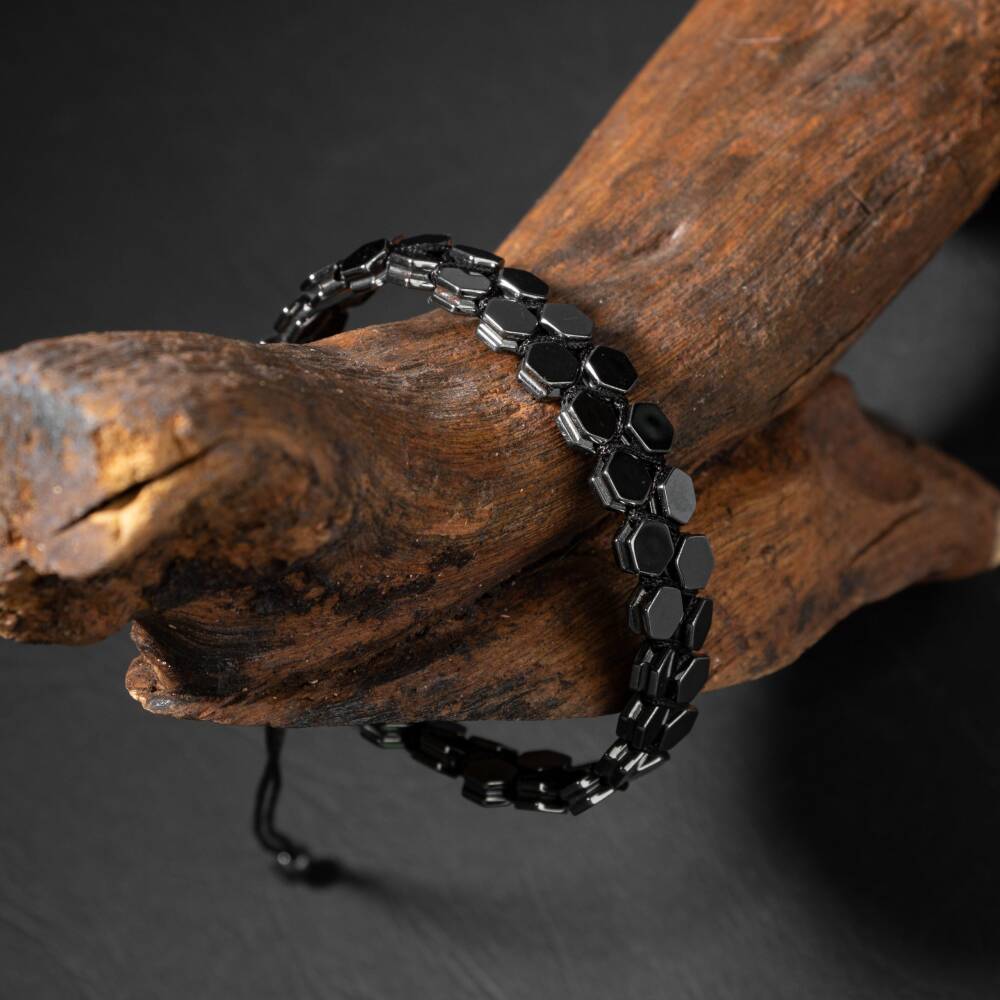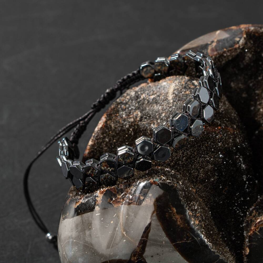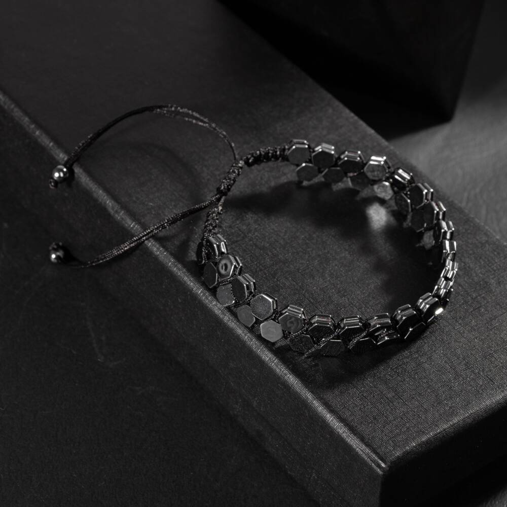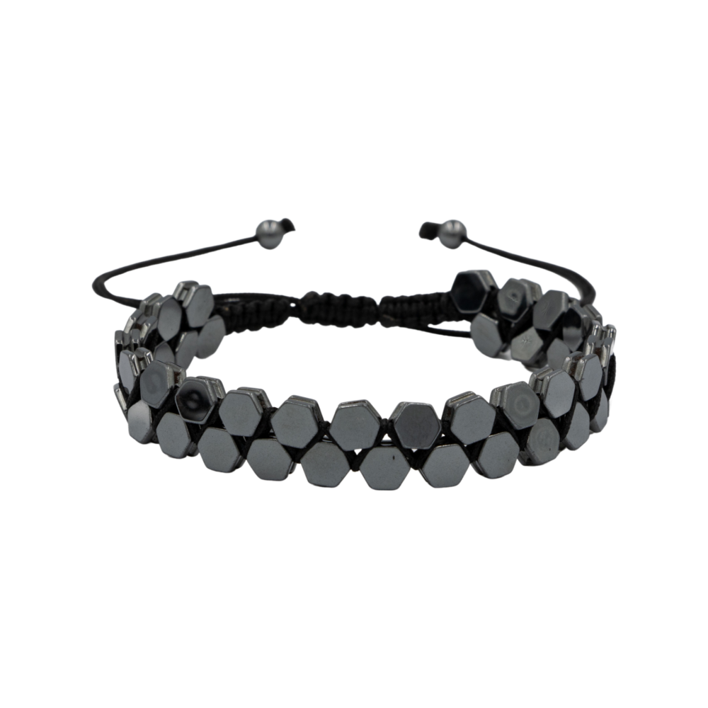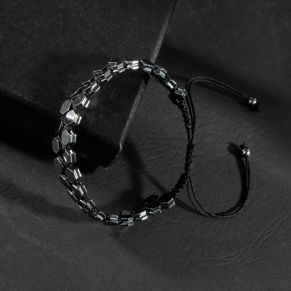 Hematit Doğal Taş Erkek Makrome Bileklik