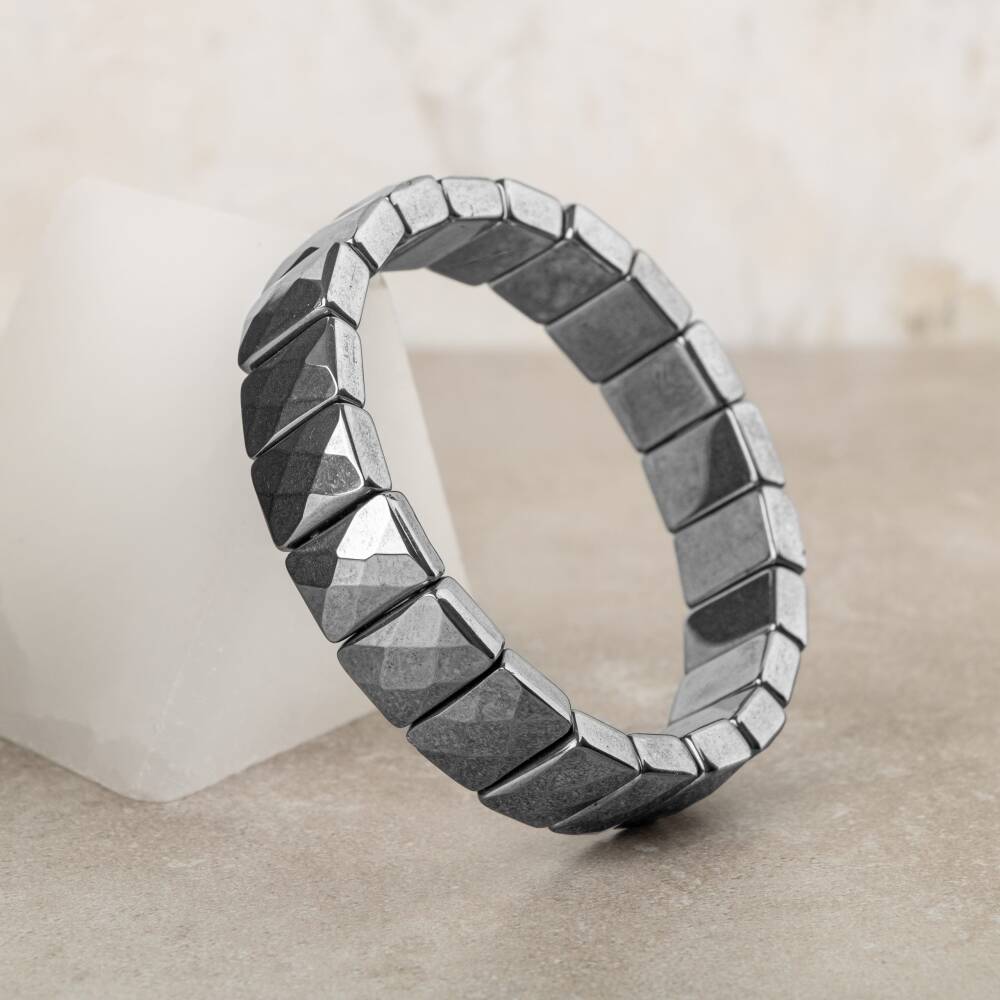 Hematit Doğal Taş Kare Kesim Geniş Kesim Bileklik - 2