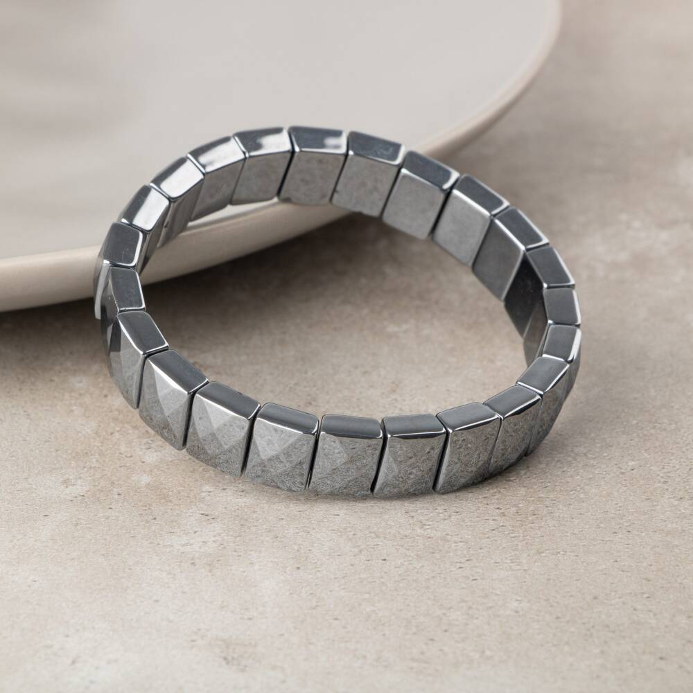 Hematit Doğal Taş Kare Kesim Geniş Kesim Bileklik - 1