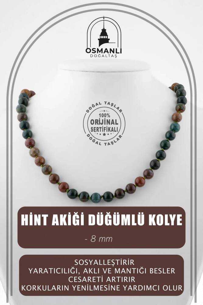 Hint Akiği 8 mm Düğümlü Doğal Taş Kolye - 1