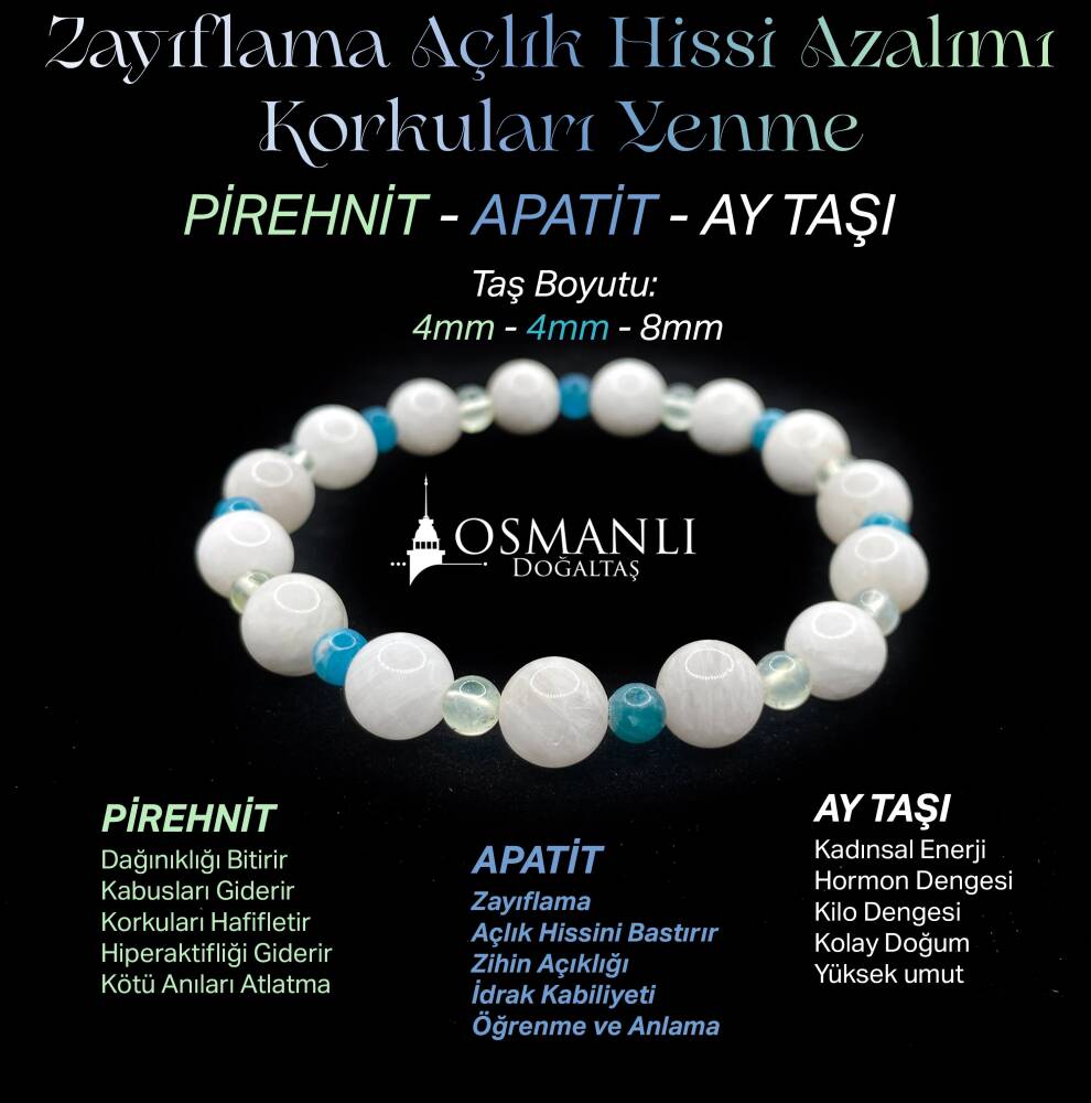 Mavi Apatit Taşı Özellikleri: Açlık hissini bastırarak kilo vermeyi destekler ve artırır, Zihin açıklığı verir, öğrenmeyi ve idrak etmeyi yükseltir.