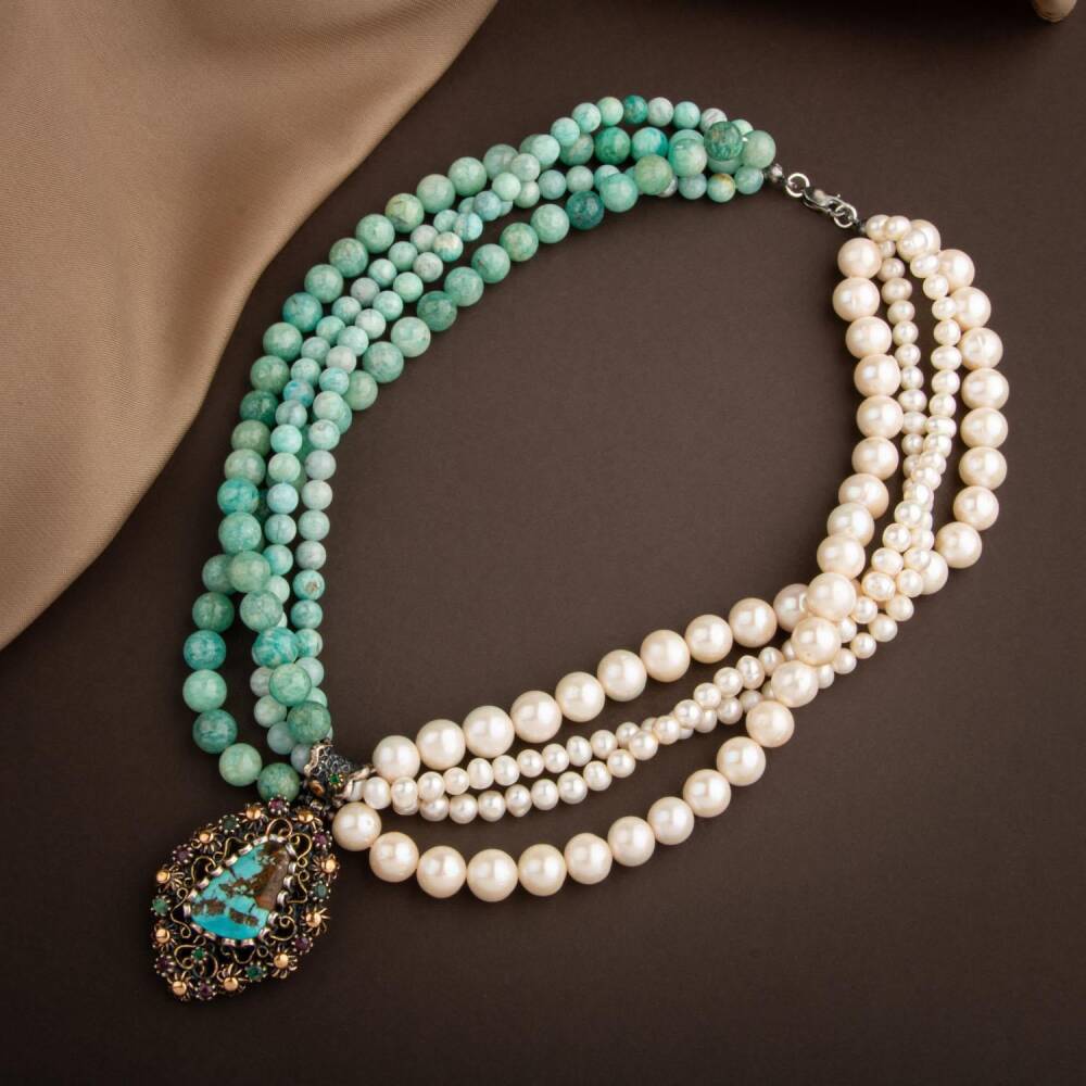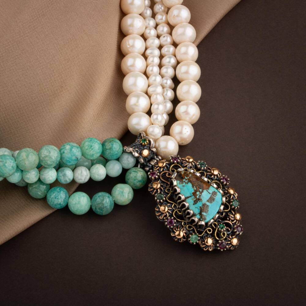 İnci ÖzellikleriDişil enerji verir. Hem ruhsal hem de bedenen hafiflik verir. Kaygıyı, gerginliği ve kötü düşünceleri engeller. Amazonit Taşı ÖzellikleriKreatif düşünceyi besler. Yetenekleri kuvvetlendirir. Kızgınlık ve öfke gibi keskin negatif duyguları törpüler. Başkalarıyla uyumu artırır. Turkuaz (Firuze) Taşı ÖzellikleriNazara karşı çok etkilidir. Romantizmi artırır. Olumsuz enerjileri dağıtır. Hava kirliliğine ve çevresel kirliliklere karşı koruma sağlar. Psikolojik yorgunluğu giderir. ----------------