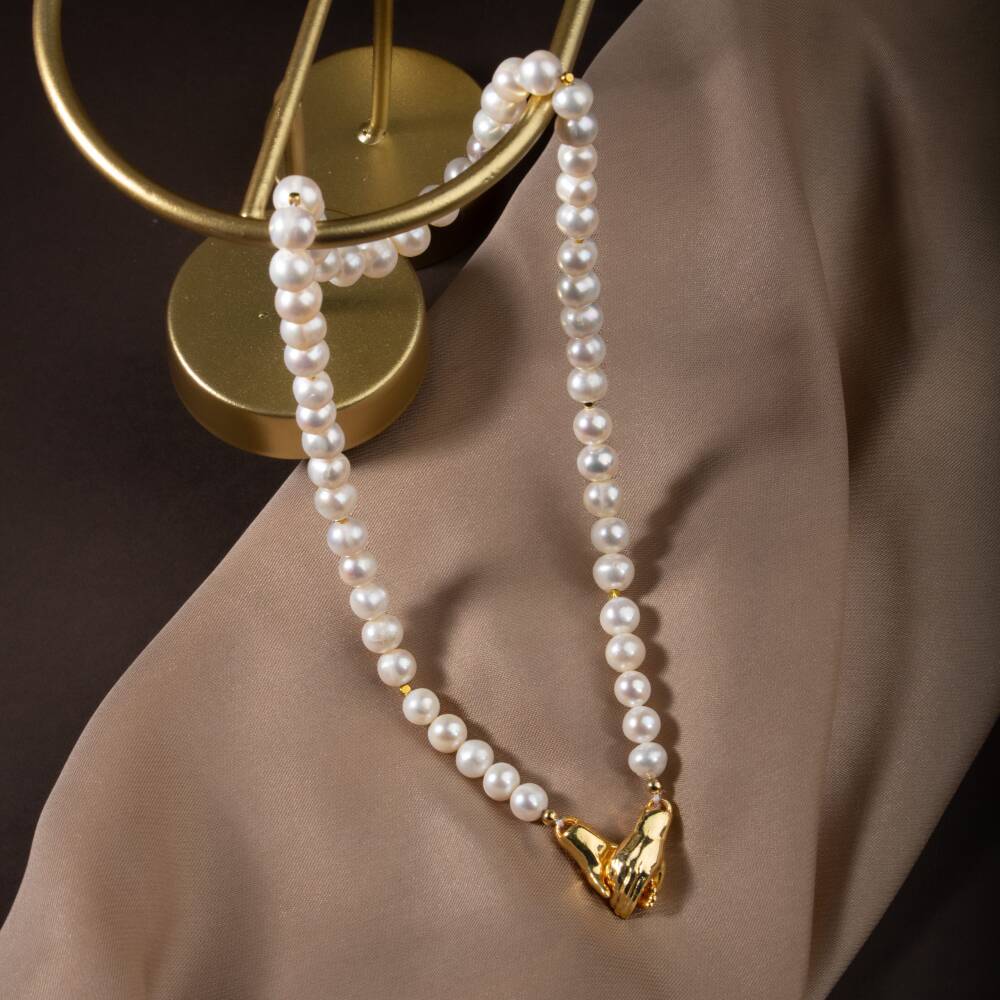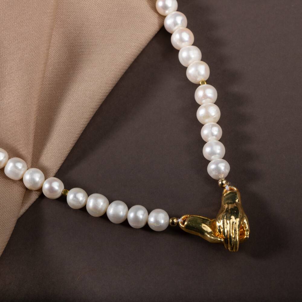 İnci Doğal Taş Gümüş El Ele Kolye