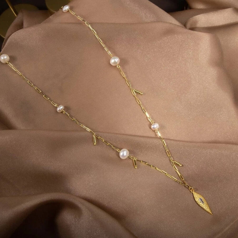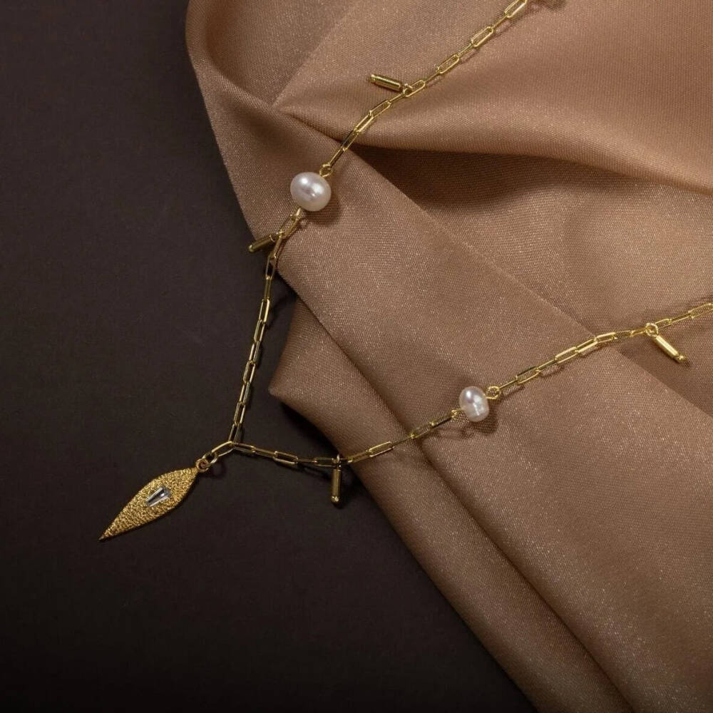 İnci Doğal Taş Gümüş Kolye