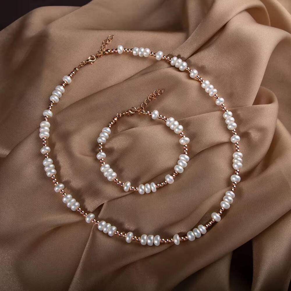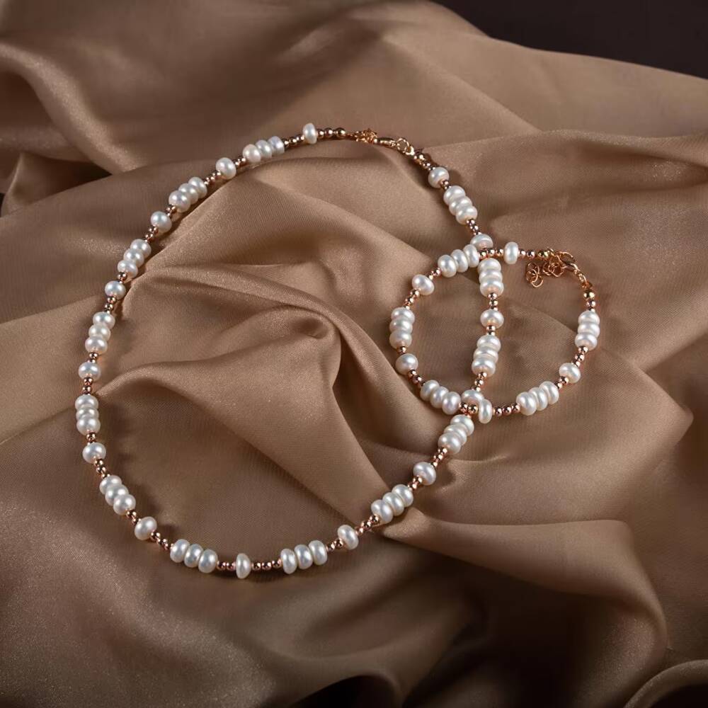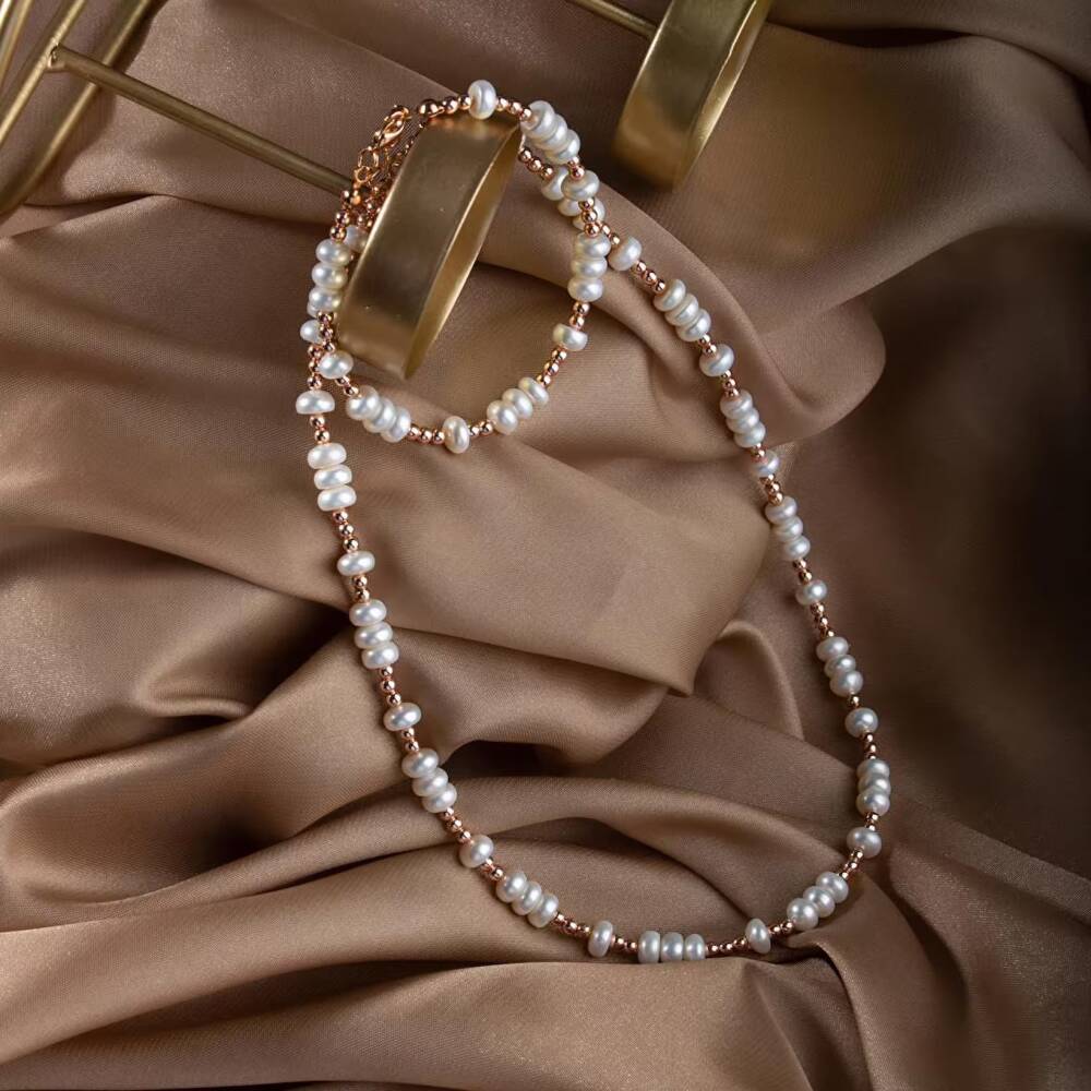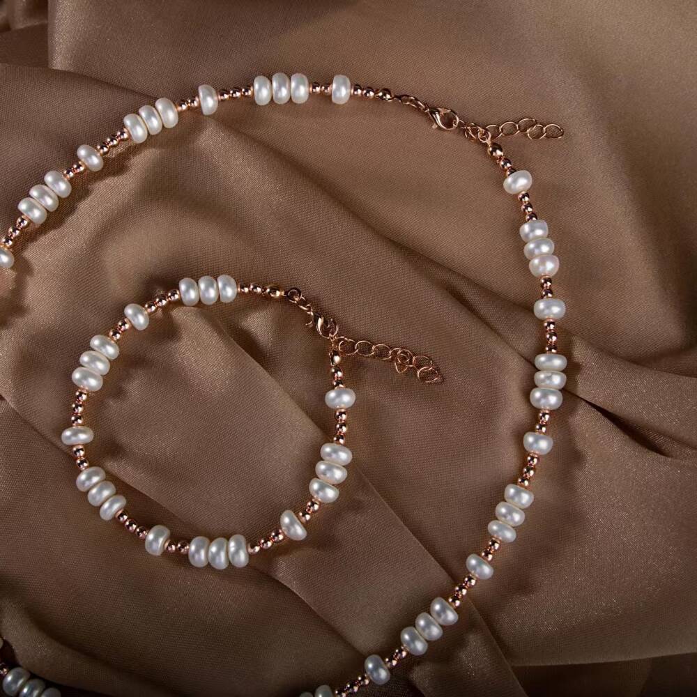 İnci-Hematit Doğal Taş Gümüş Takı Seti