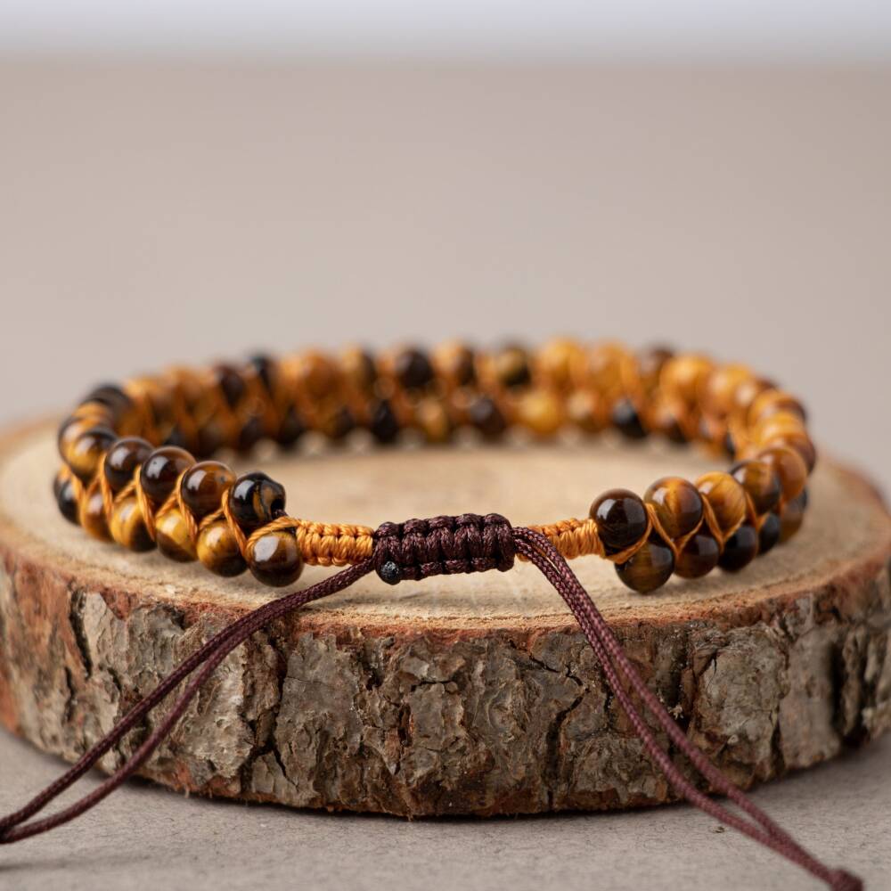 Kaplan Gözü 4mm Çift Sıra Doğal Taş Bileklik