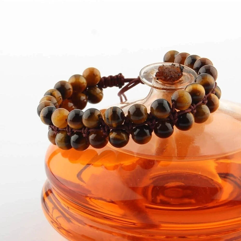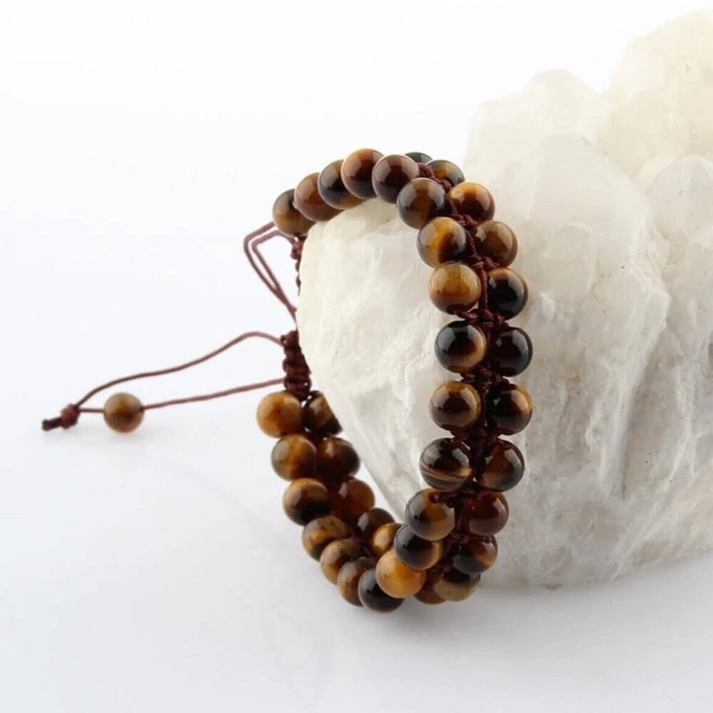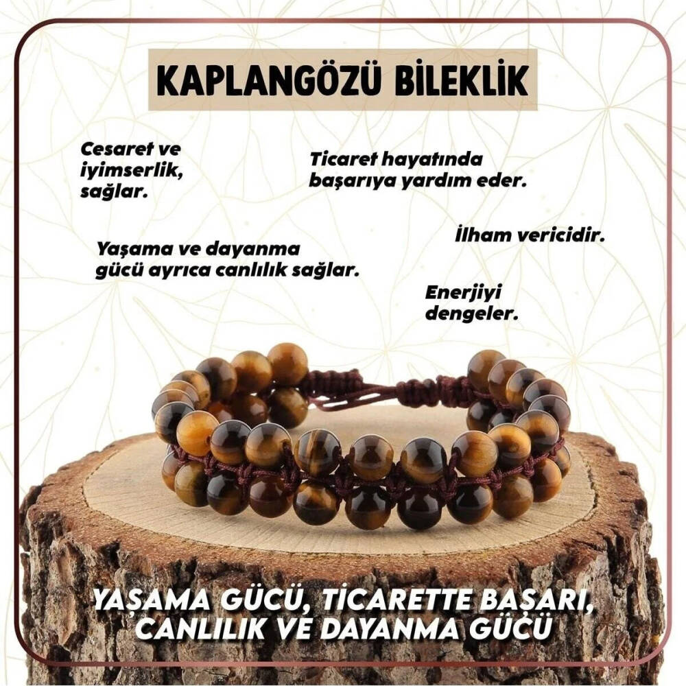 Kaplan Gözü 8mm Çift Sıra Makrome Doğal Taş Bileklik
