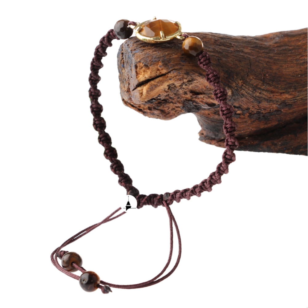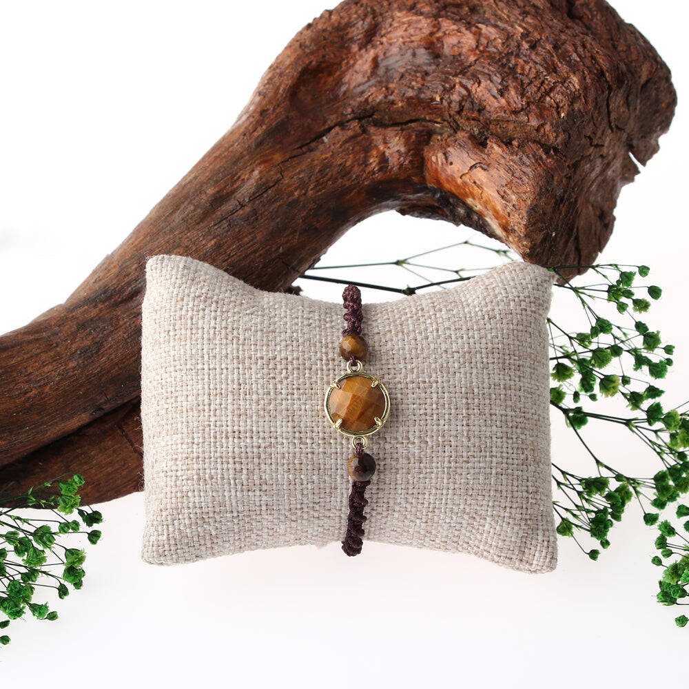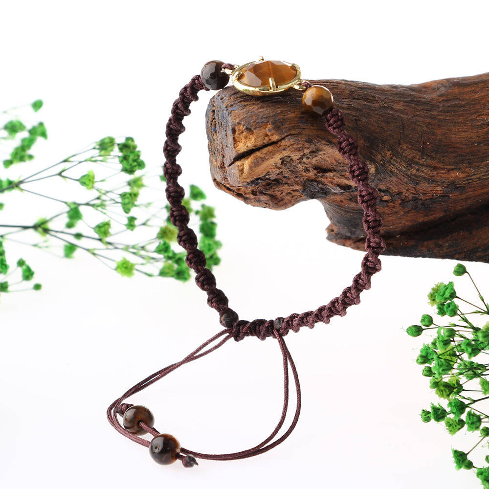 Kaplan Gözü Doğal Taş Makrome Örgü Bileklik