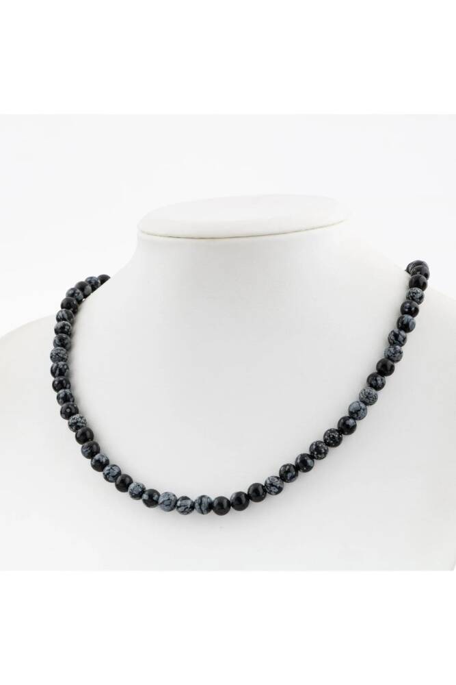 Karlı Obsidyen 6 mm Dizi Doğal Taş Kolye