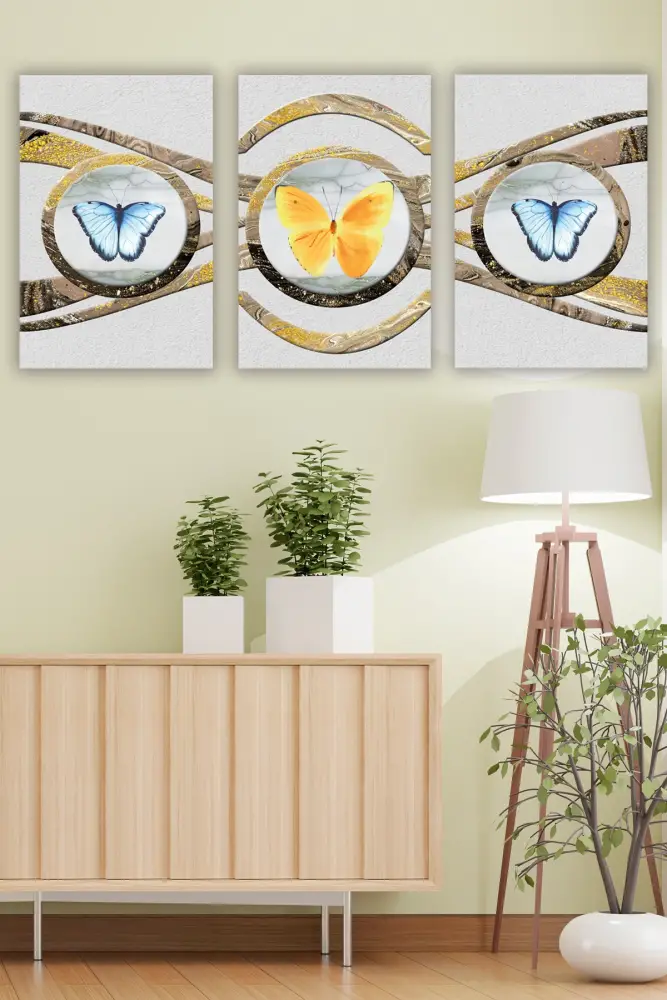 Set İçeriği: 3 adet tablo (kelebek desenli tasarımlar)
