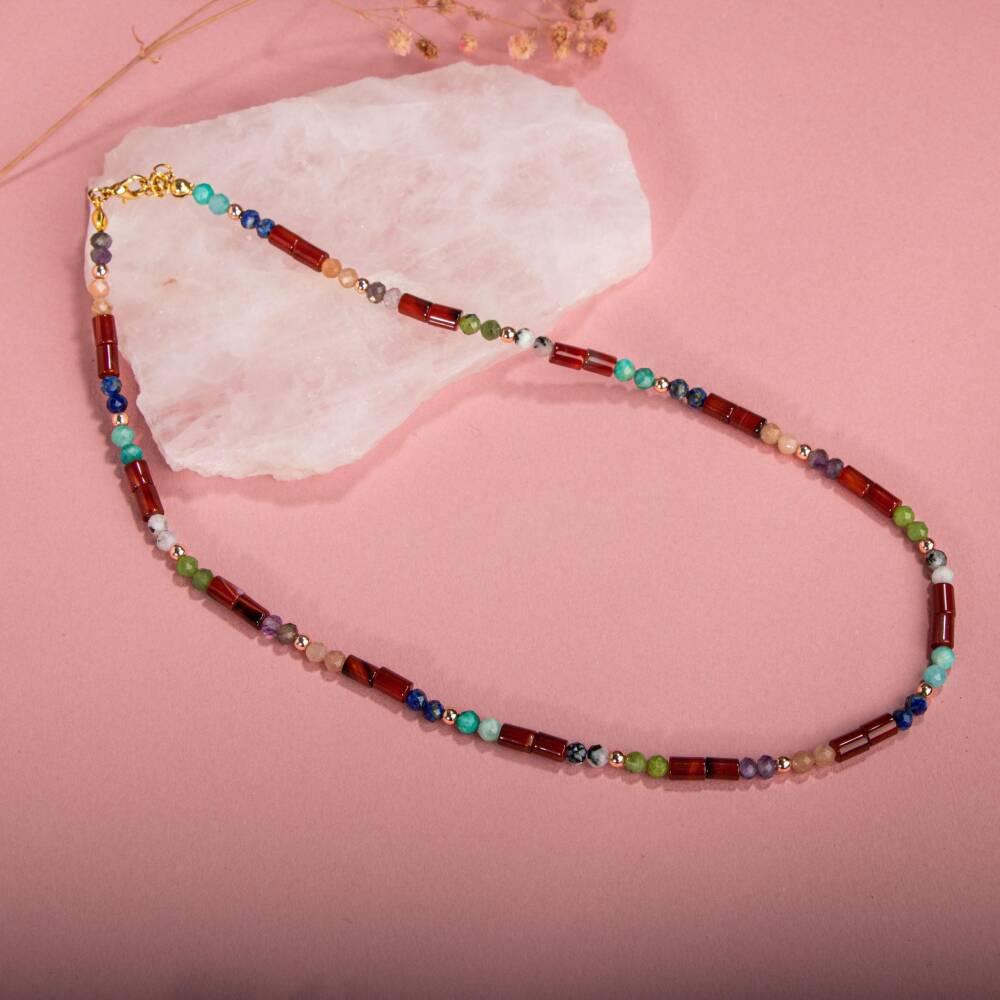 TÜM TAŞLARIMIZ SERTİFİKALI ve %100 ORJİNAL GERÇEK DOĞAL TAŞTIR. Doğal taş takılarının bu eşsiz güzelliği ve faydalarıyla müşterilerimize en kaliteli ve en özel takıları sunuyoruz. Her bir takı, tasarımcılarımız tarafından özenle hazırlanmış, doğal taşların renkleri ve enerjileri ile birlikte, size en uygun olanı seçmenizi sağlar.Doğal taş takılarımız, herhangi bir moda stiline mükemmel bir şekilde uyum sağlar. Aynı zamanda doğanın eşsiz güzelliklerini keşfetmek isteyenler için de harika bir seçenek sunarlar. Kendinizi özel hissetmek istediğinizde, doğal taş takılarımız sizin için mükemmel bir seçenek olacaktır.Ürün İçeriğindeki Taşlar Aşağıda Listelenmiştir. Kırmızı Akik Taşı ÖzellikleriSosyalleştirir. Yaratıcılığı, aklı ve mantığı besler. Cesareti artırır, korkuların yenilmesine yardımcı olur. Odaklanmayı artırır. Pozitif enerji verir: Rahatlatır. Stresi Giderir. Ay Taşı ÖzellikleriHer kadında olması gereken başlıca taştır. Kadın taşıdır. Kadınsal rahatsızlıklara iyi gelir. Kadınsal, dişil enerjiyi ve hormonları artırır, teşvik eder. Ametist Taşı ÖzellikleriBağışıklığı yükseltir, sakinleştirici ve rahatlatıcıdır, uyku problemlerine giderir ve yoğun duygu ataklarını önler. Güneş Taşı ÖzellikleriHayırseverliği ve erdemli olmayı aşılar. Hayattan zevk almayı ve keyif almayı artırır. Liderlik ruhunu ve kabiliyetini destekler. Yeşim Taşı ÖzellikleriNazarı önler ve varsa giderir. Bilge bakış açısı kazandırır. Kendi kendine yeterli olmayı sağlar. Fikir üretmeyi destekler. Öz benliği açığa çıkarır. Toksinleri giderir. Amazonit Taşı ÖzellikleriKreatif düşünceyi besler. Yetenekleri kuvvetlendirir. Kızgınlık ve öfke gibi keskin negatif duyguları törpüler. Başkalarıyla uyumu artırır. Hematit Taşı ÖzellikleriHayatta kalma iç güdüsünü artırır. Cesaret, irade ve özgüven duygularını artırır. Cesaret, irade ve özgüven duygularını yükseltir. ------------BİLGİ:Doğal taşların faydaları günümüzde birçok kullanıcıdan alınan geri dönüşlerde defeatle gözlemlenmiştir. Kan dolaşımına ve sindirim sistemine bir ilaç gibi dahil edilememesi; enerjileri ve kullanımı açısından sunacağı faydaya inanma ön koşulu gerektirmesiyle kesinlikle bir ilaç mahiyetinde değildir. Fakat geçmişten günümüze Biruni ve İbn-i Sina gibi büyük tıp alimleri doğal taşlar üzerinde düşünmüş, araştırmış ve geliştirdikleri tedavi yöntemlerine dahil etmişlerdir.Doğal taşların faydaları bilimsel bir deney-gözlem sürecinden ziyade geçmişte yaşayan toplumların ve tıp alimlerinin kullanım amaçlarına istinaden belirlenmekte, tespit edilmektedir. Bil biliyoruz ki şifa sadece Allah’tandır. Nereden ve nasıl geleceği belli olmaz. KAYNAK:Osmanlı Doğaltaş taşların özellikleri ve kullanım bilgileri için aşağıdaki kaynaklardan faydalanmaktadır.Walter Schumann, Gemstones Of The World (Sterling Yayın Evi, 17. Baskı).Judy Hall, Değerli Taşlar Kitabı (Alfa Basım Yayın, 3. Basım, 2021)Muhammed Bin Mahmud-ı Şirvani, Tuhfe-i Muradi. Hazırlayan: Mustafa Argunşah (Türk Dil Kurumu, 1999)Patrick Voillot, Elmaslar ve Değerli Taşlar (Yapı Kredi Yayınları, 1. Baskı, 2013)