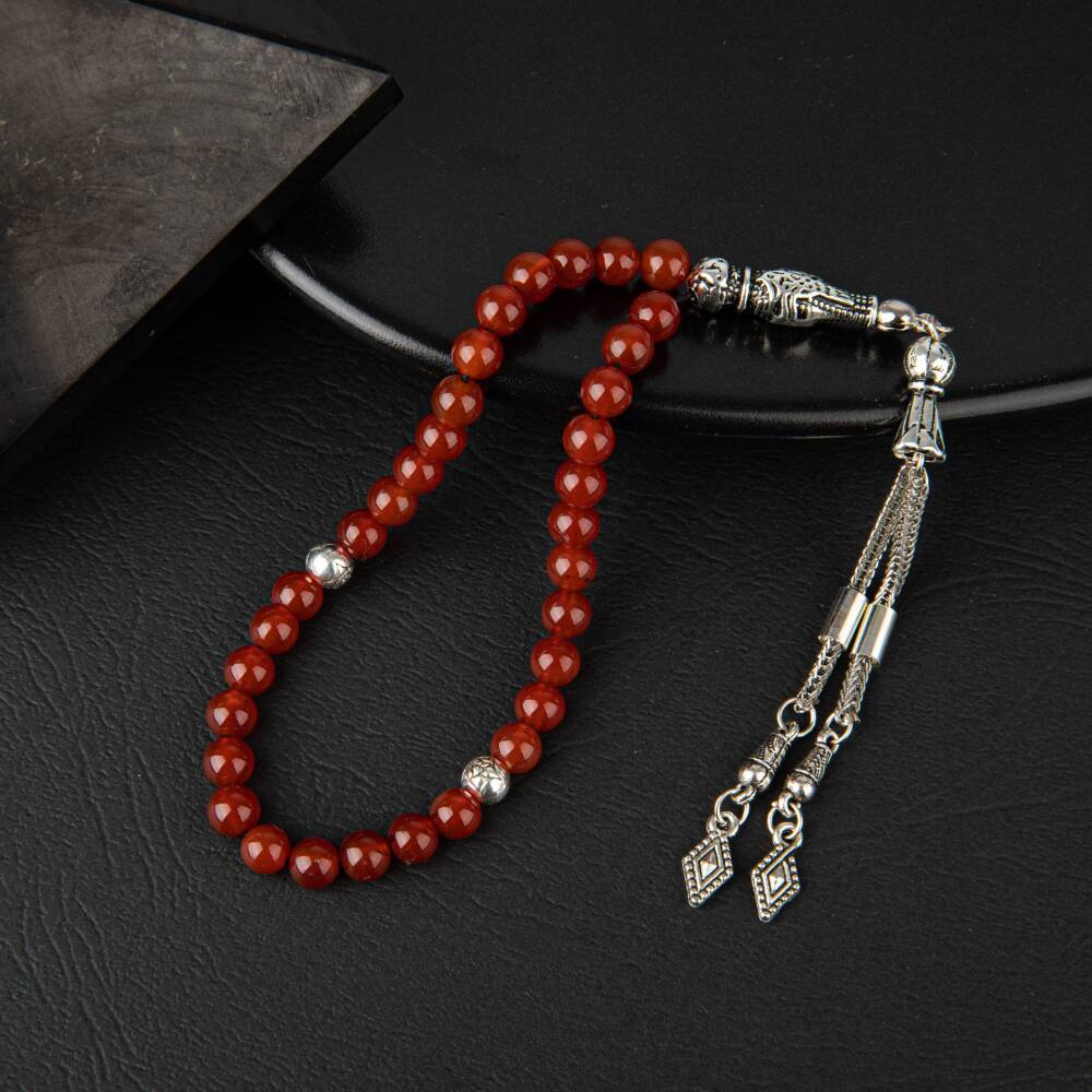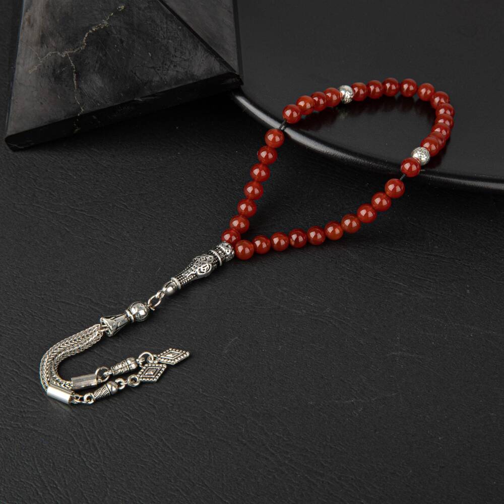 Kırmızı Akik Doğal Taş Tesbih 33lük - 6mm - 2